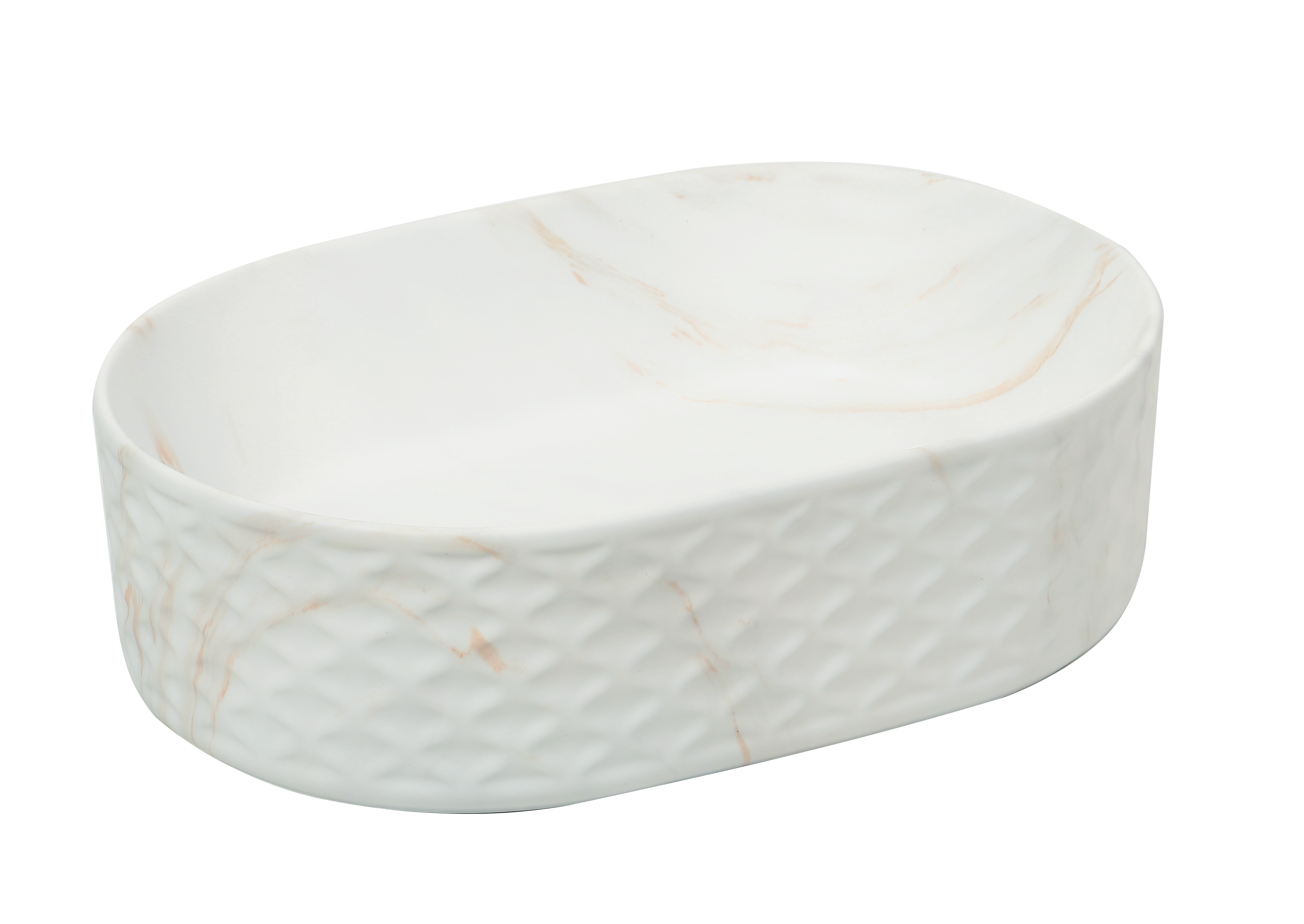 Lavoar ceramic oval A788-P816M – design marmorat alb mat