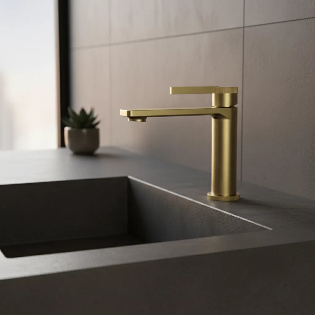 Baterie lavoar din alamă cu design vertical auriu