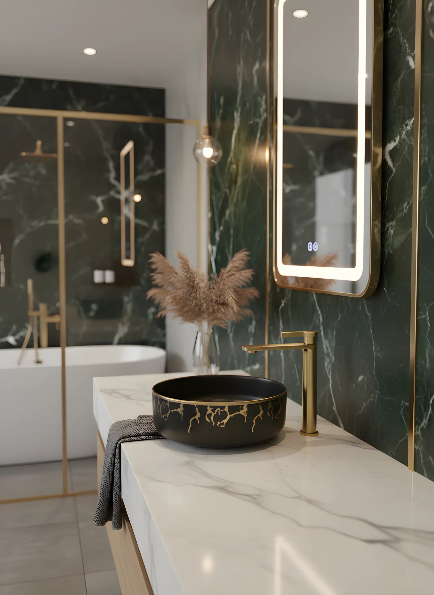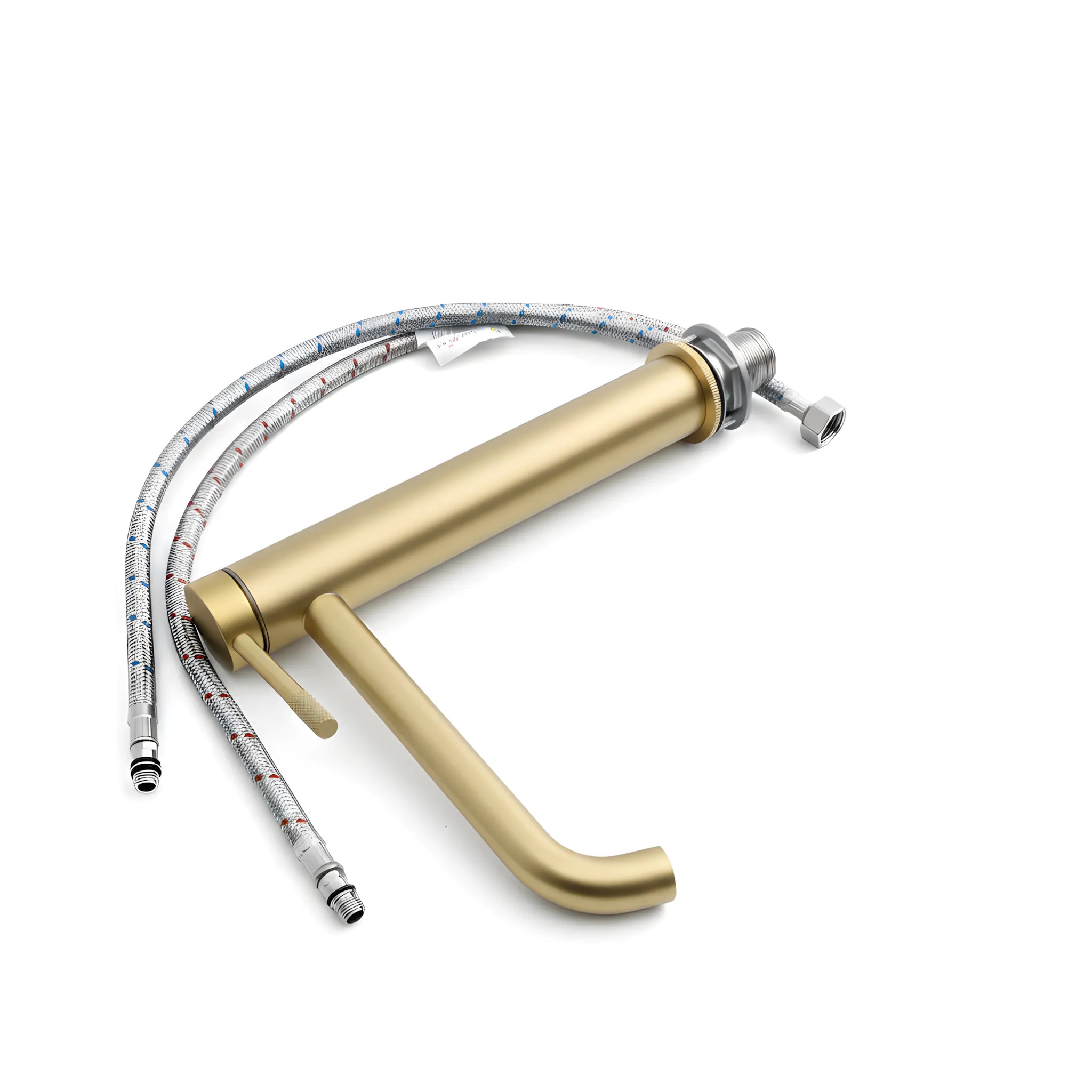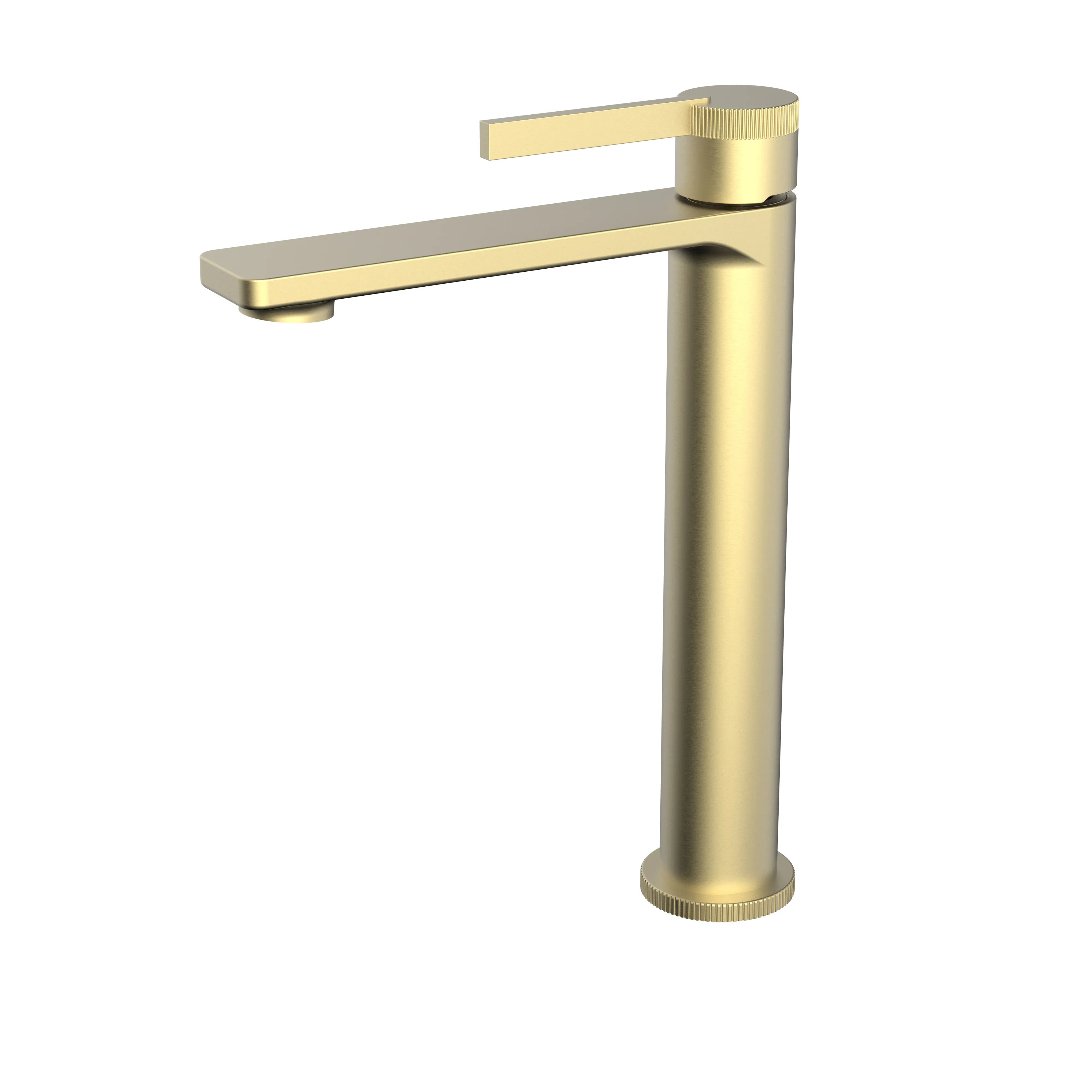 Baterie lavoar cu mâner rotund texturat vertical – finisaj auriu periat