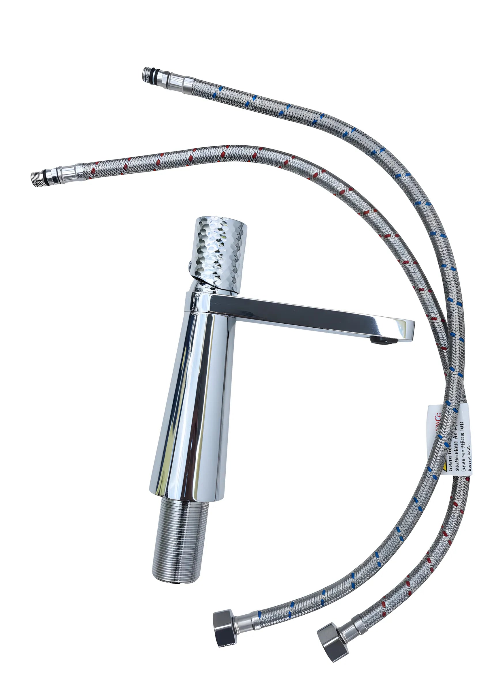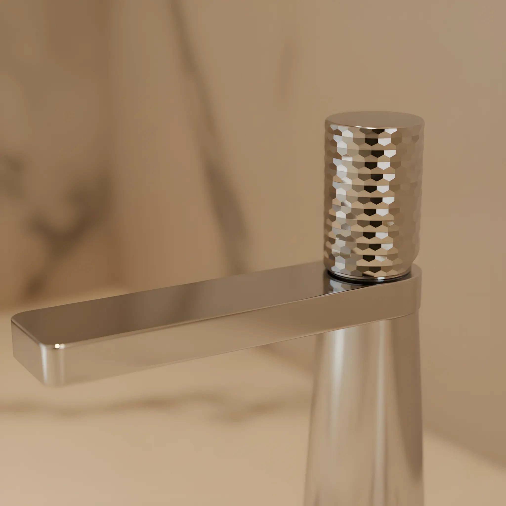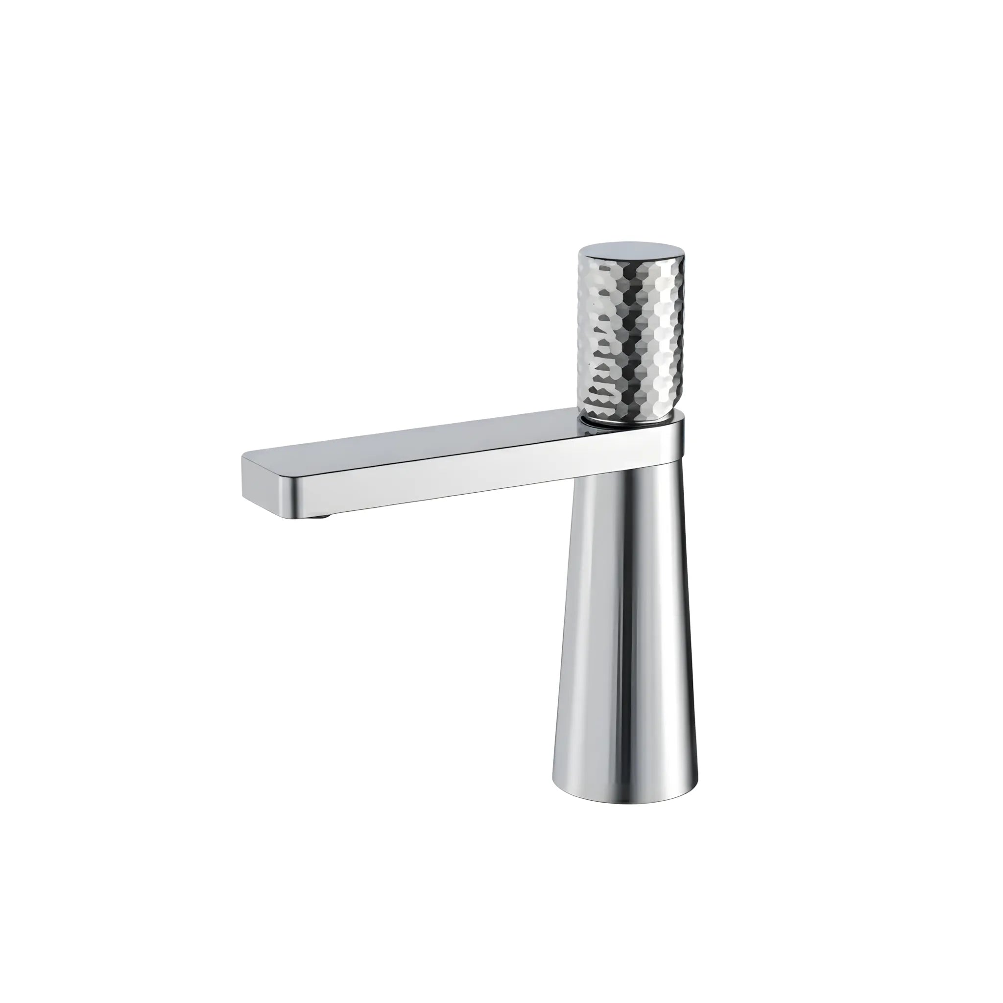 Baterie lavoar crom lucios cu textură ciocănită – design contemporan din alamă solidă