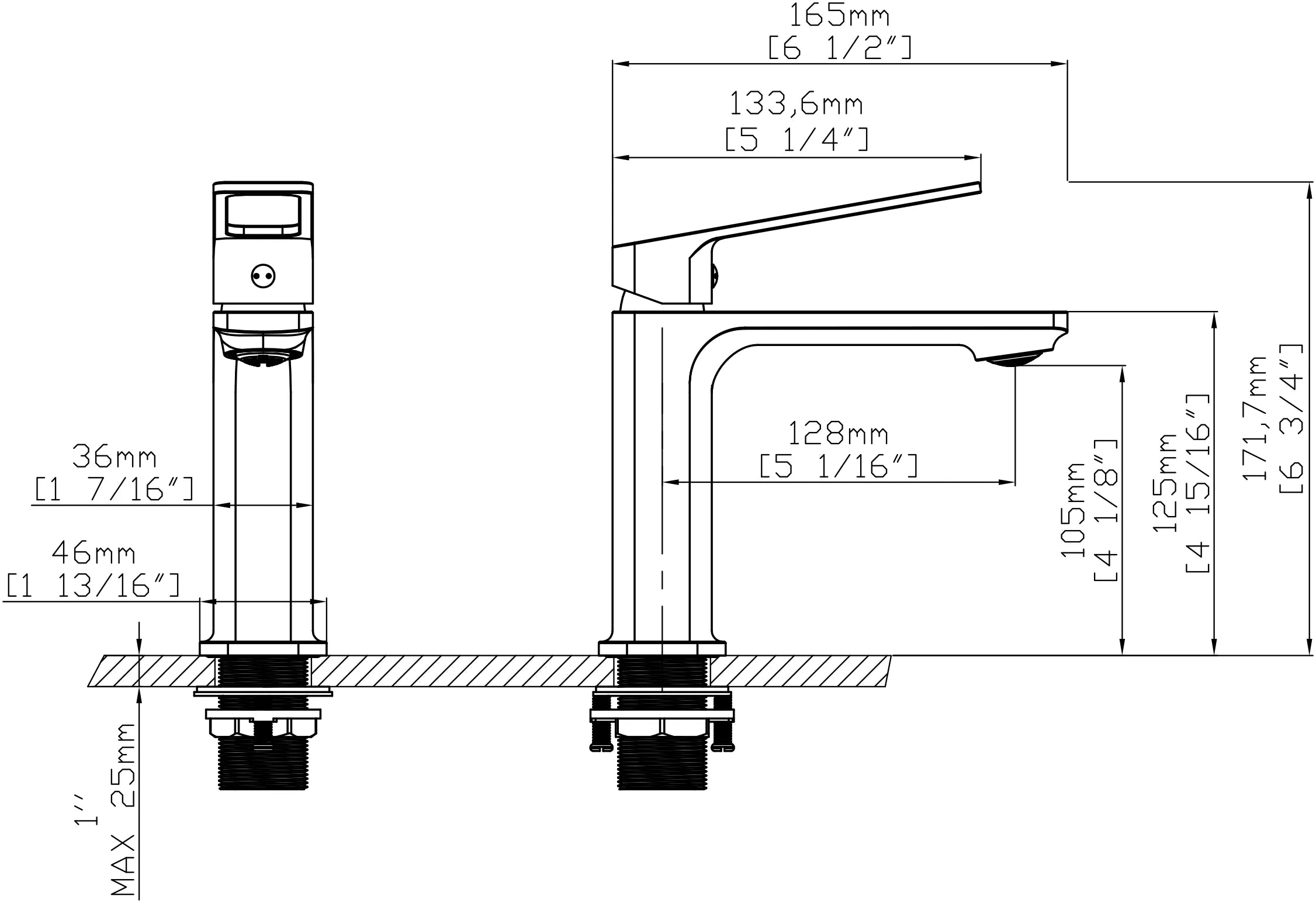 Baterie lavoar modernă Crom Lucios – design contemporan cu linii curate, alamă solidă