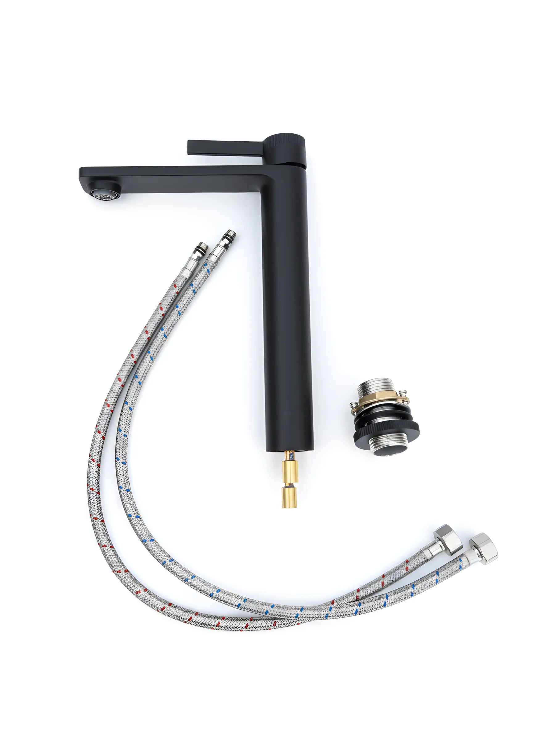 Baterie lavoar cu mâner rotund texturat vertical – finisaj negru mat