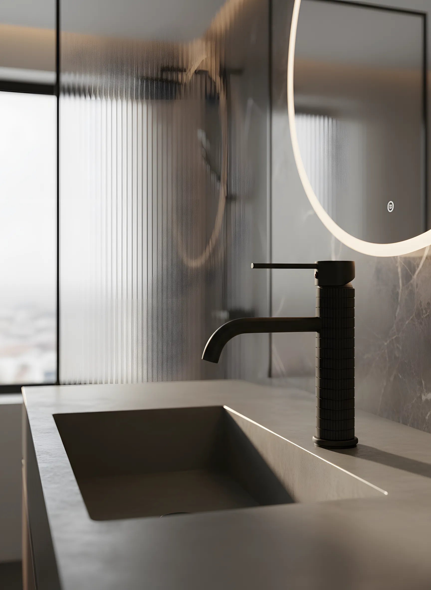 Baterie lavoar negru mat cu textură canelată – design contemporan din alamă solidă