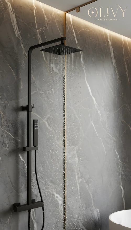 Set duș termostatic pătrat H-cubic – inox premium, finisaj negru mat