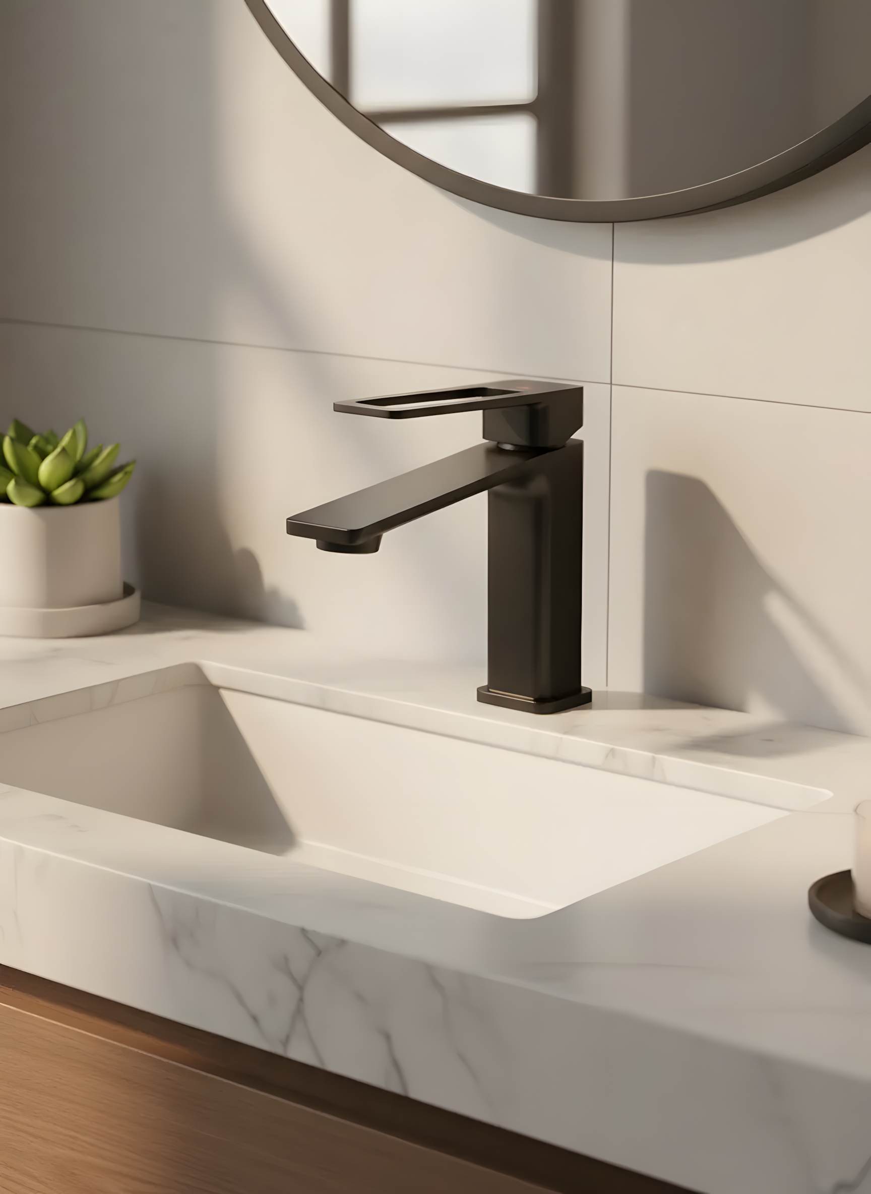 Baterie lavoar modernă – finisaj negru mat, design premium