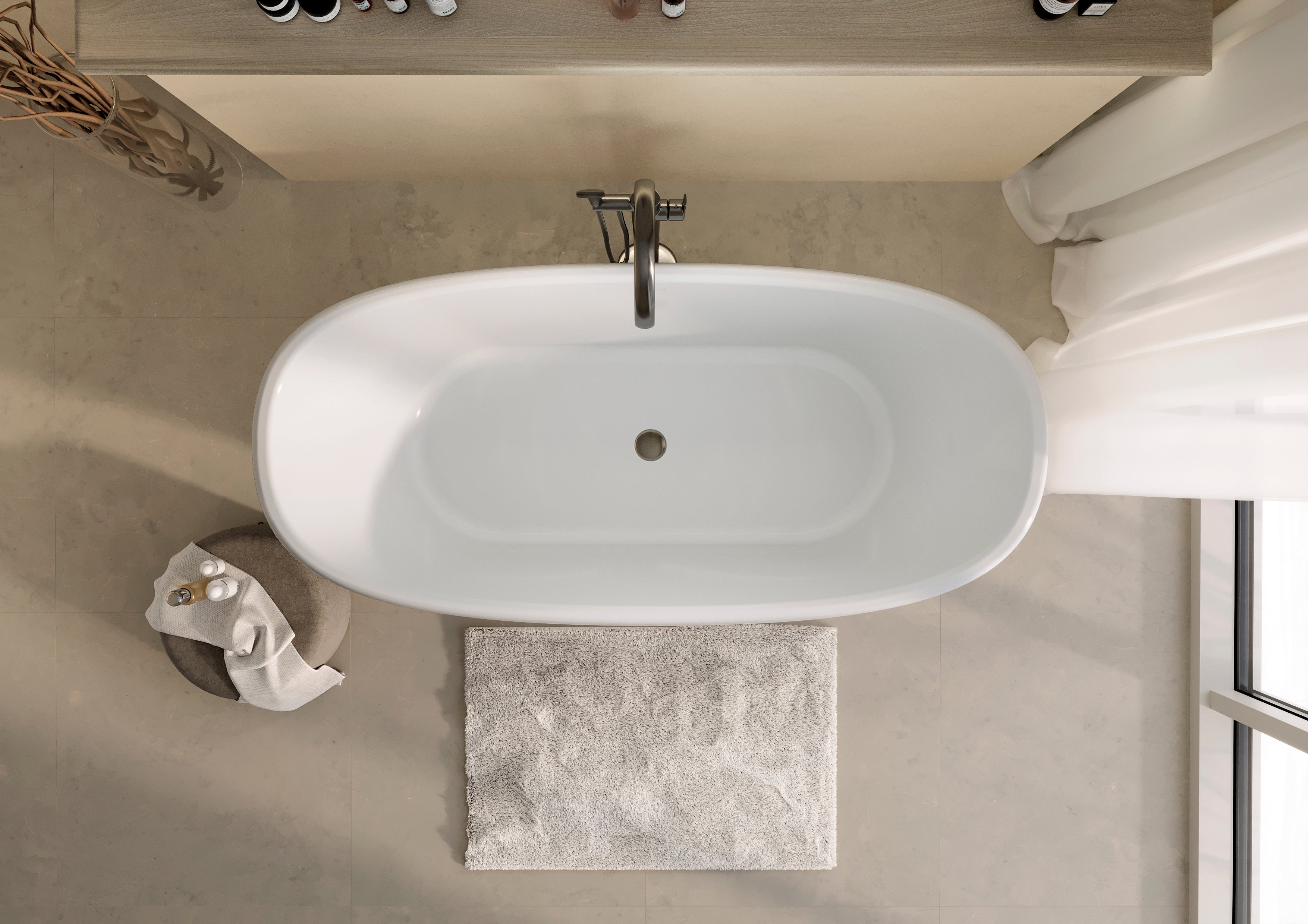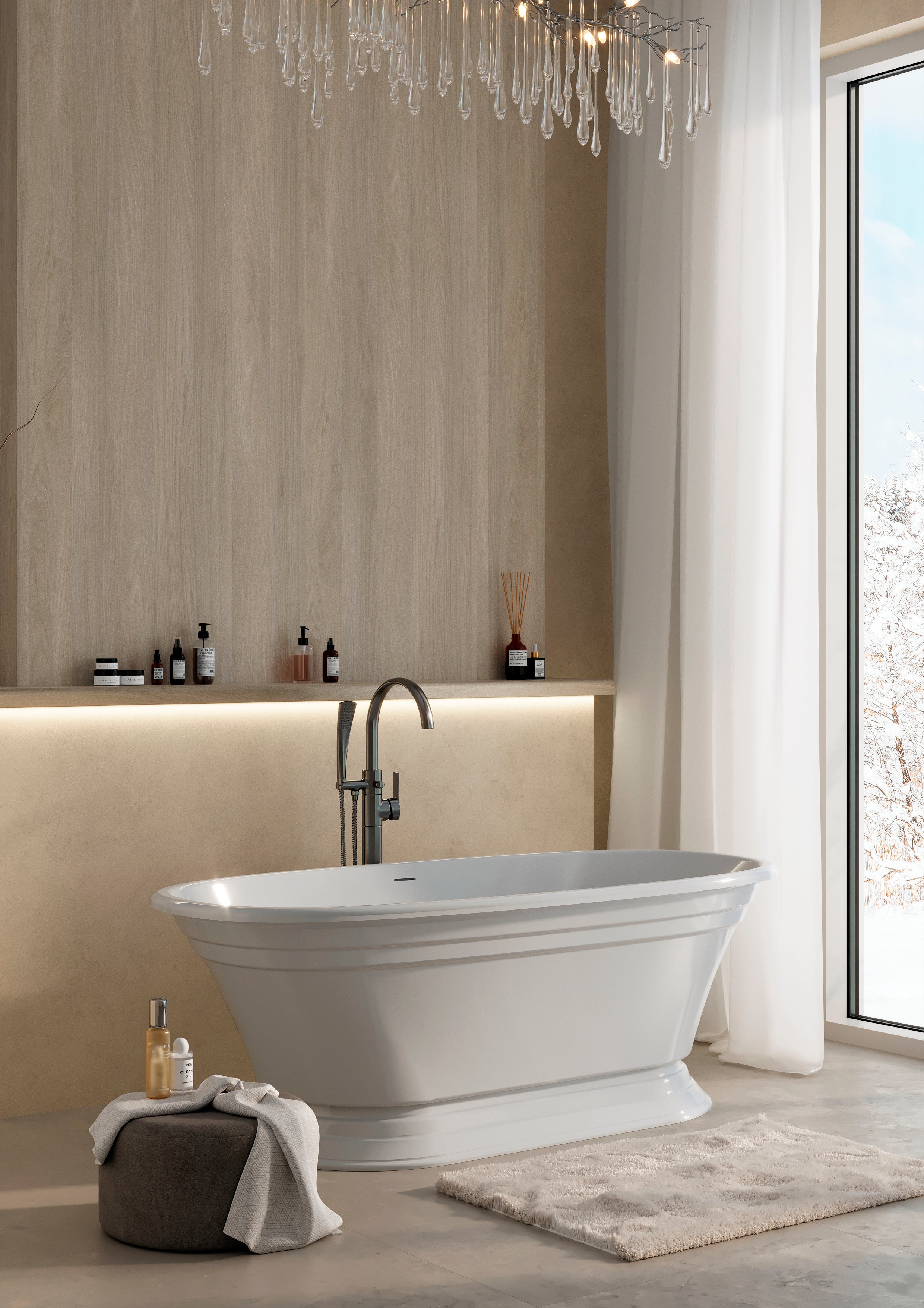 Cadă din compozit albă lucioasă Anastasia