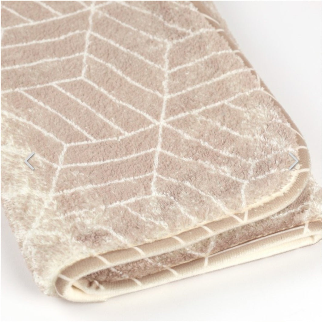 Covoras baie, SANITARY, imitatie casmir, 40x60 cm, bej cu model geometric, Dreptunghiular