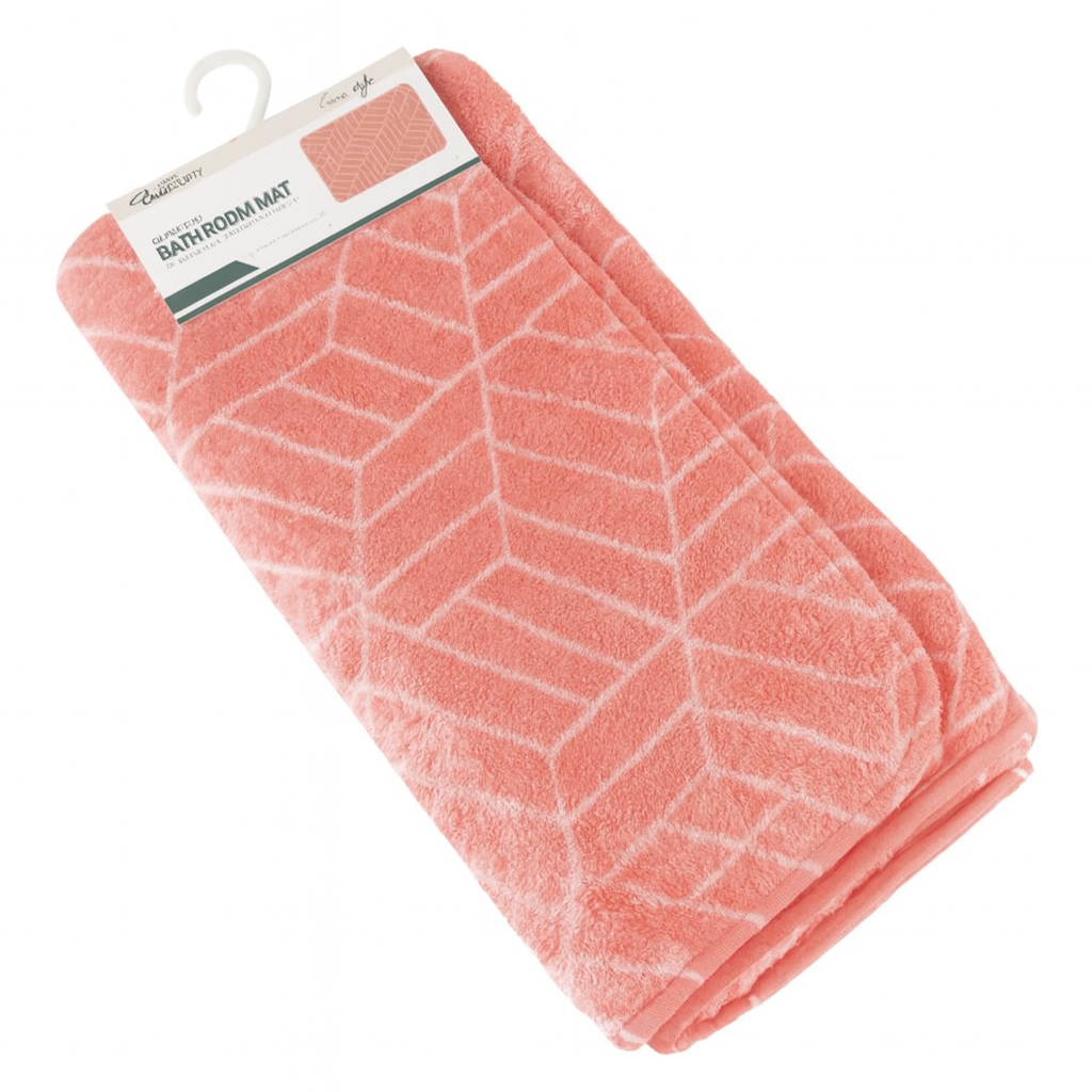 Covoras baie, SANITARY, imitatie casmir, 40x60 cm, corai cu model geometric, Dreptunghiular