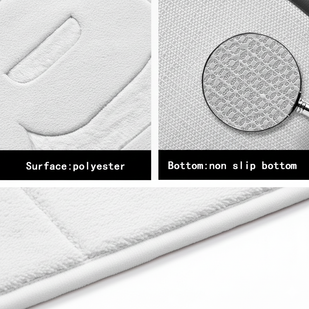 Covoraș baie cu inscripție BATH, antiderapant TRP, 45×75 cm, Alb
