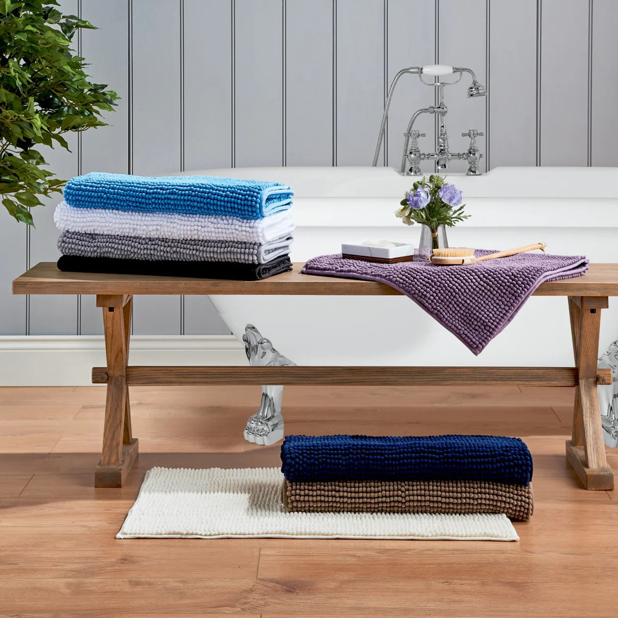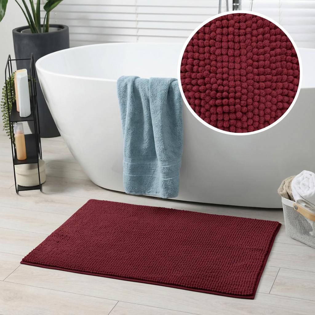 Covoraș baie din chenilia fină, strat antiderapant, 45×70 cm, Vișiniu