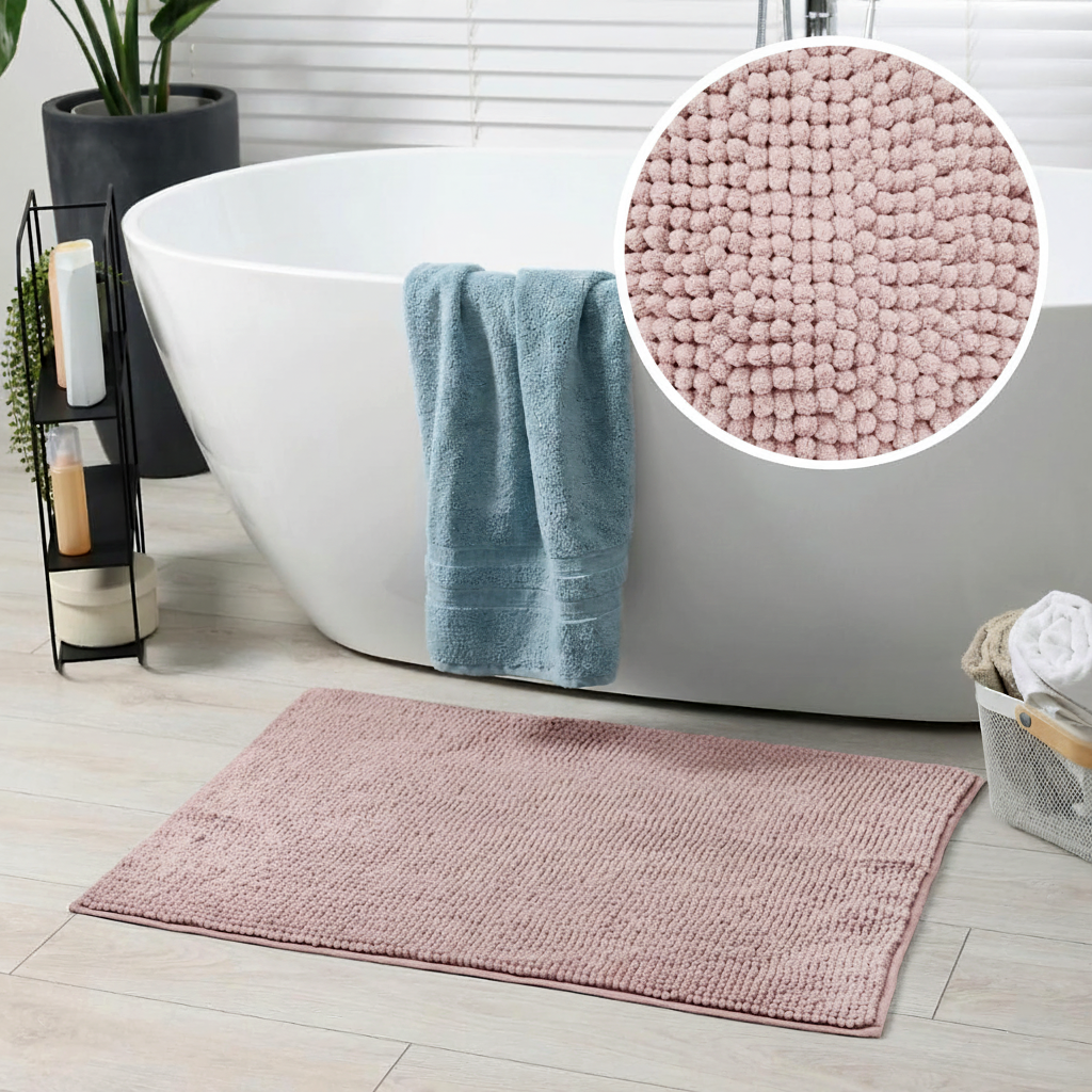 Covoraș baie din chenilia fină, strat antiderapant, 45×70 cm, Roz pudra