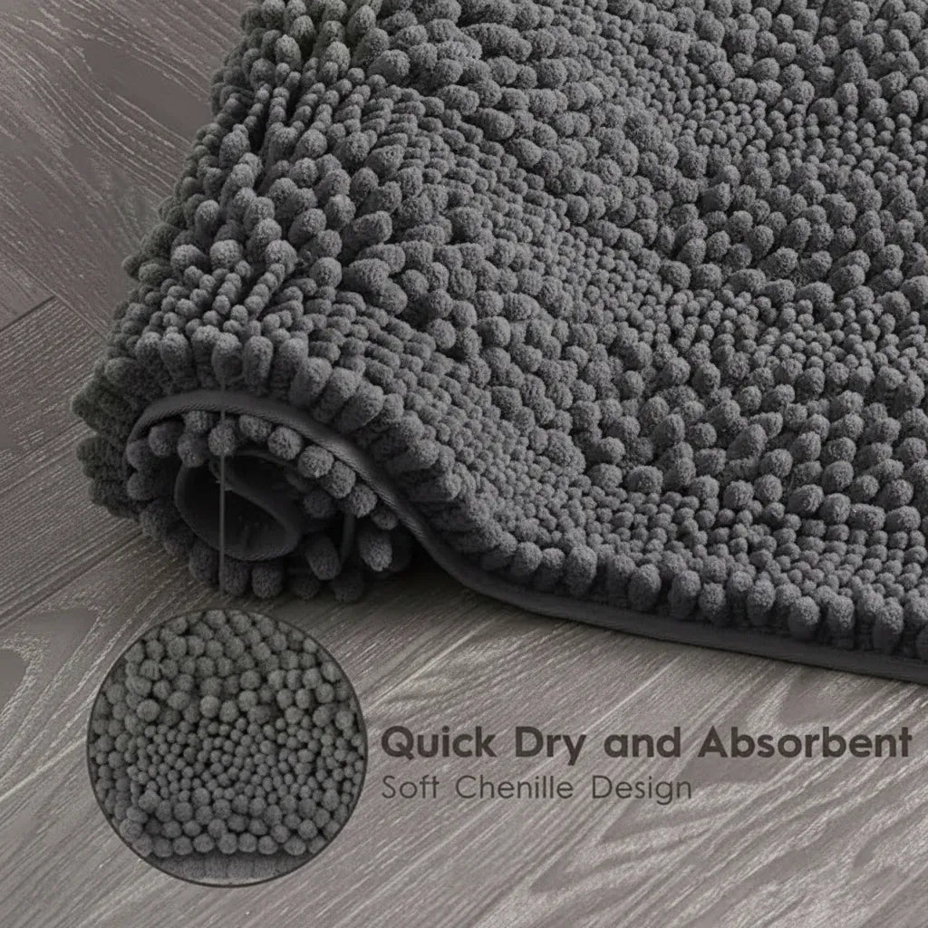 Covoraș baie din Chenille moale, strat antiderapant, 45×70 cm, Gri inchis