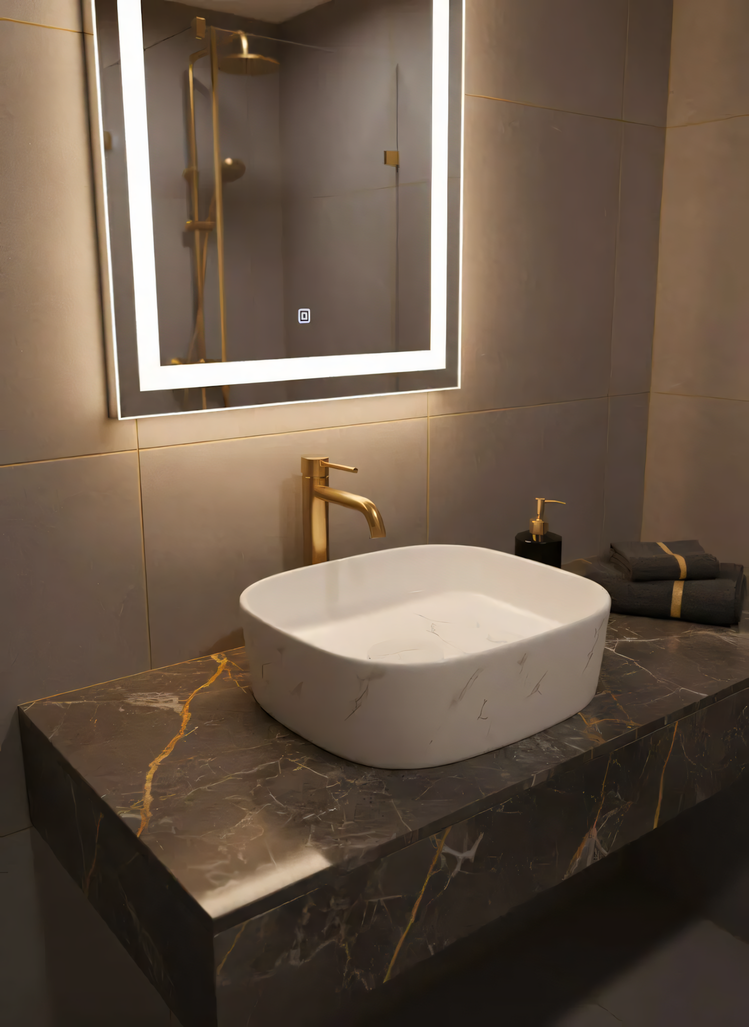 Lavoar ceramic pe blat alb cu finisaj marmorat – A707-CUGO7-M