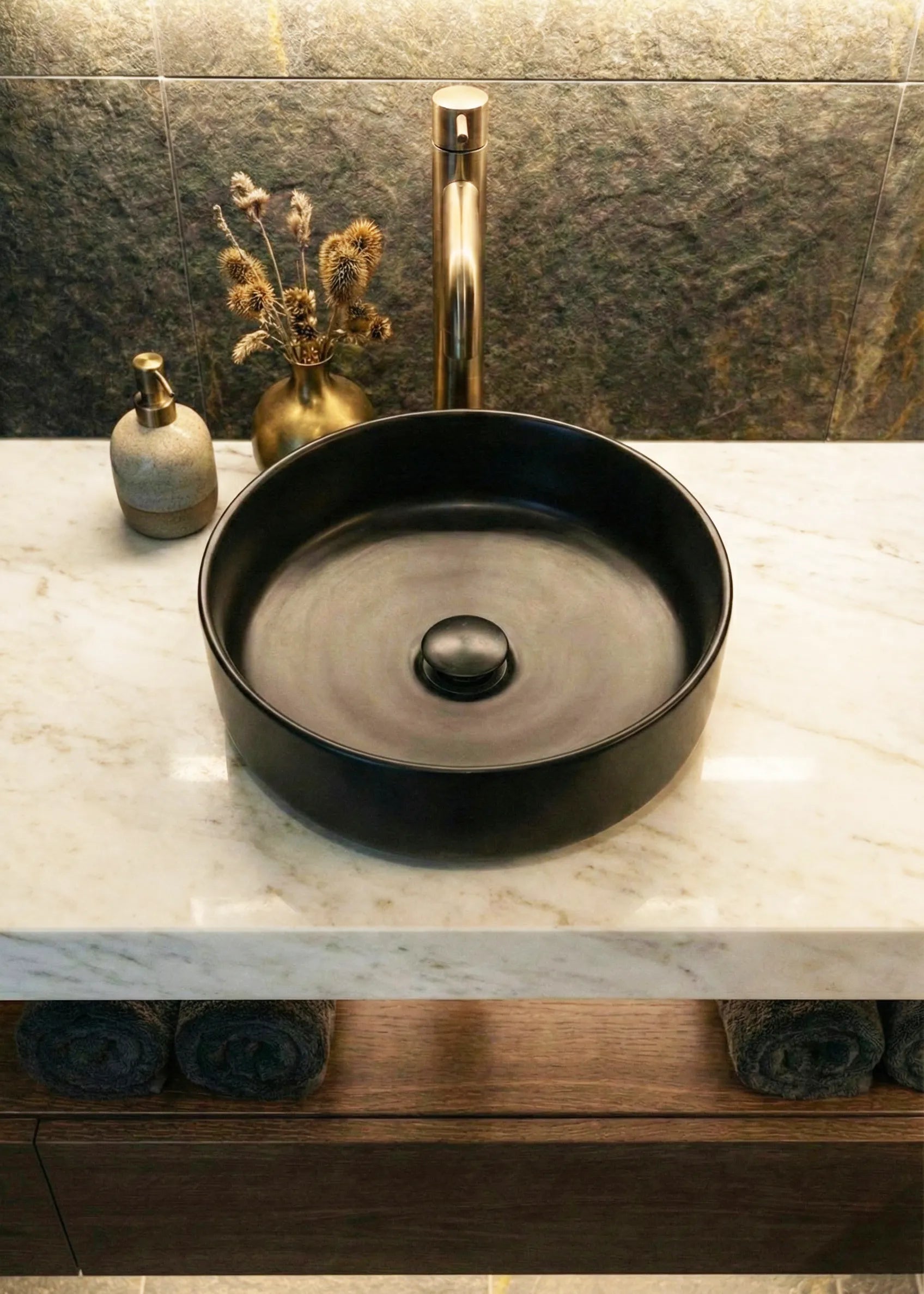Lavoar ceramic rotund A524-CBK-M – design modern negru mat