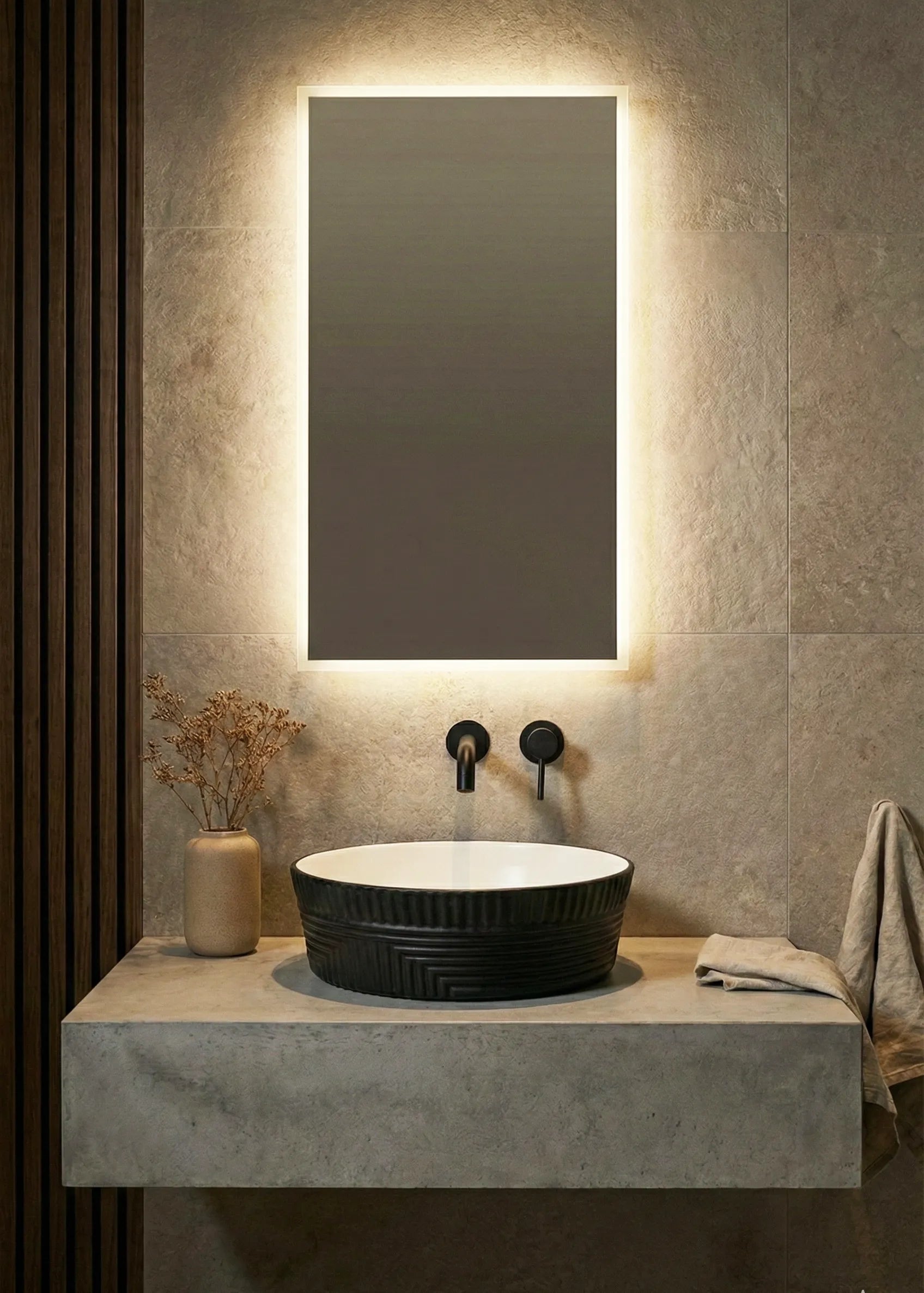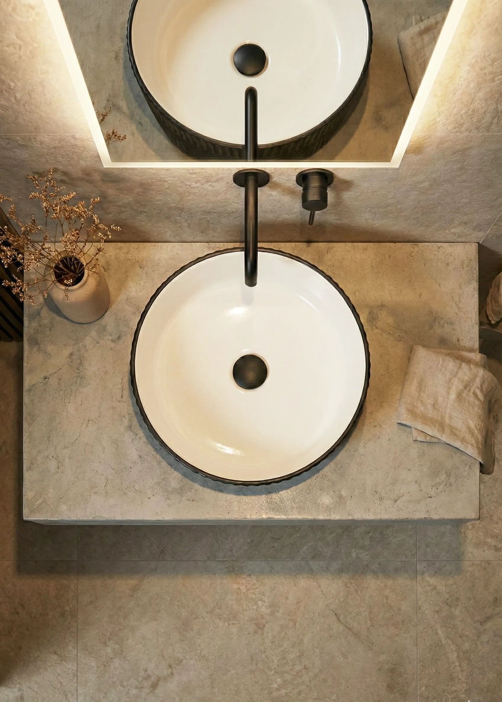Lavoar ceramic rotund A747-CBKW-MRS – design modern alb mat și negru mat texturat