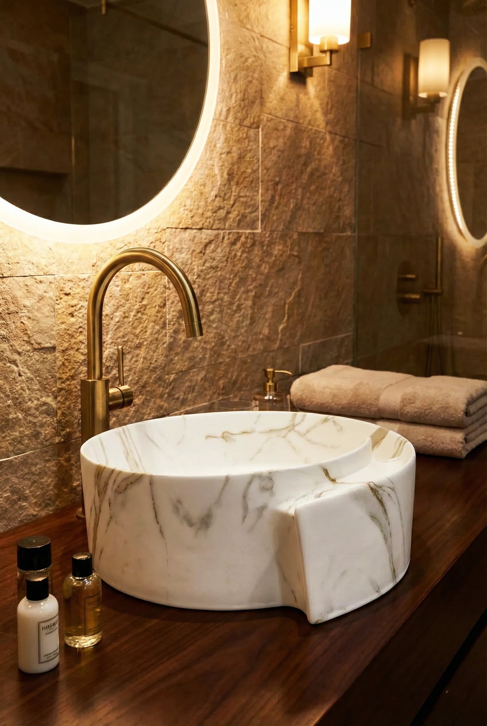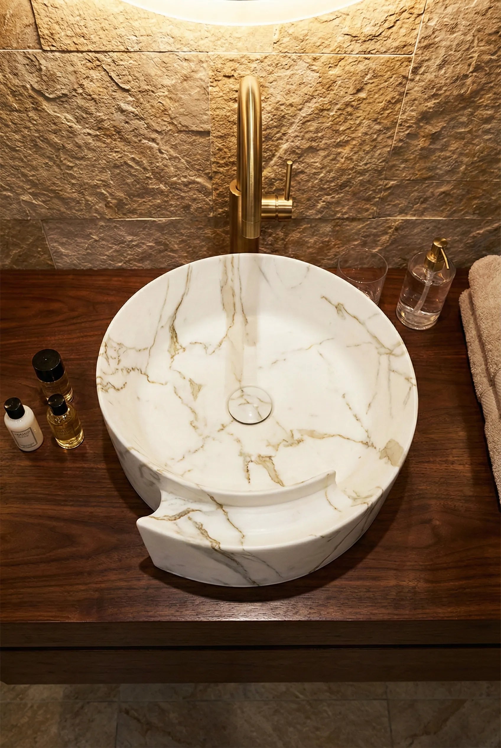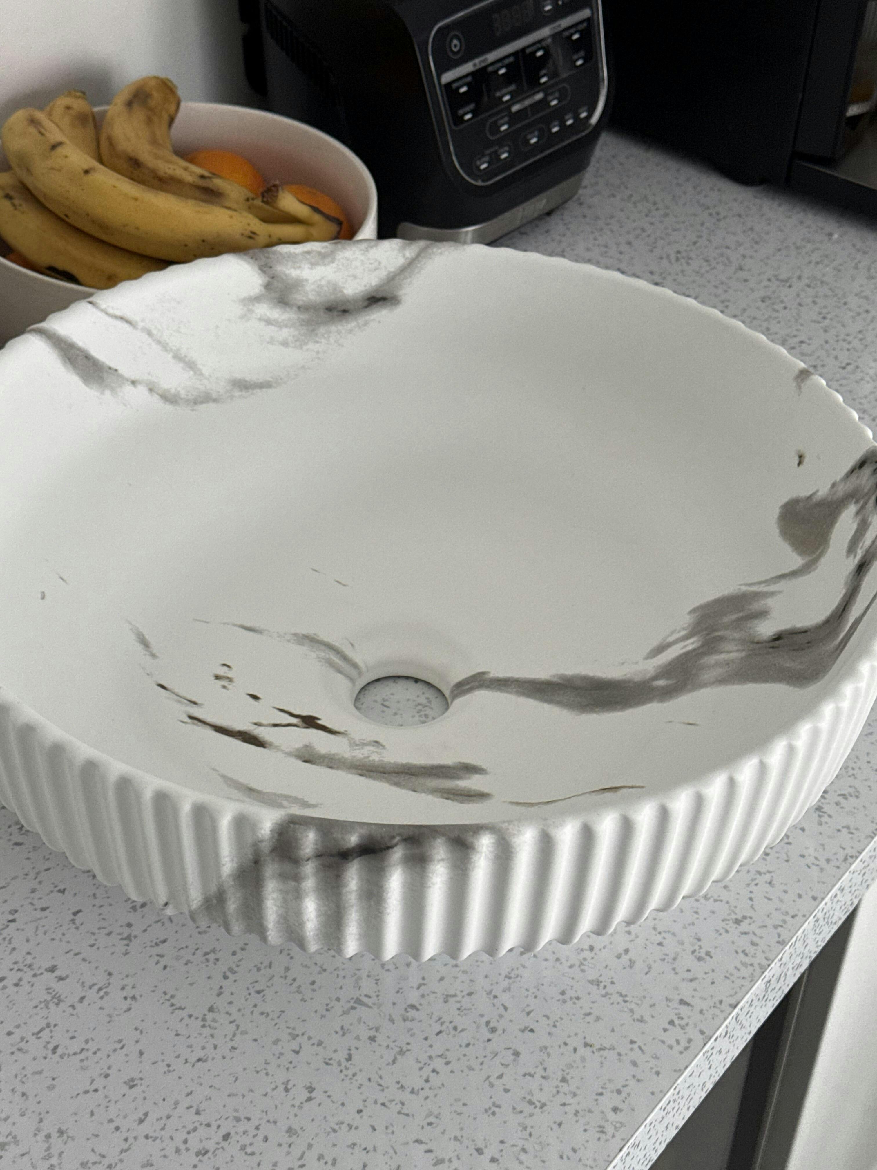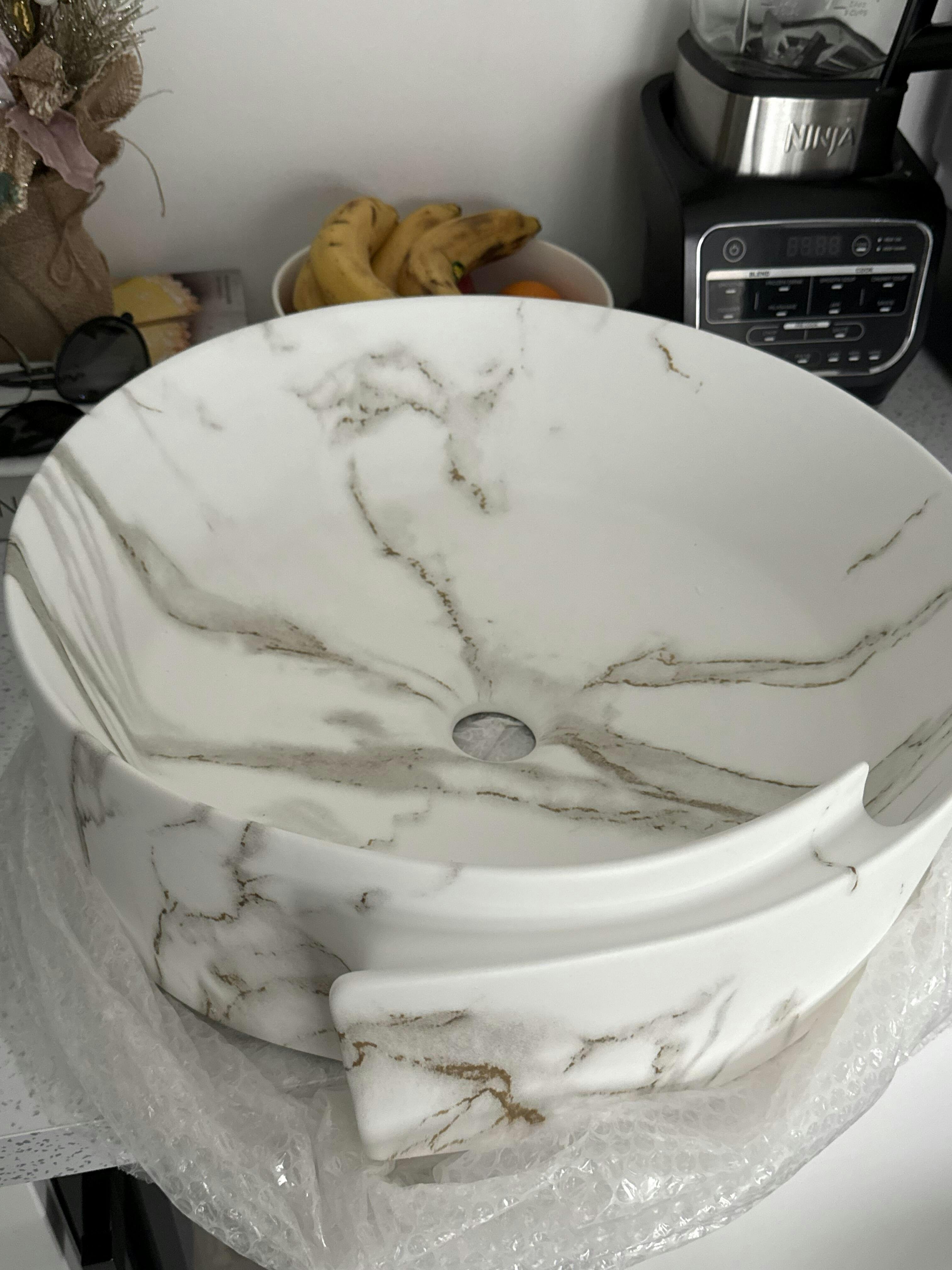 Lavoar rotund ceramic A494-P310-M – alb marmorat cu accente aurii