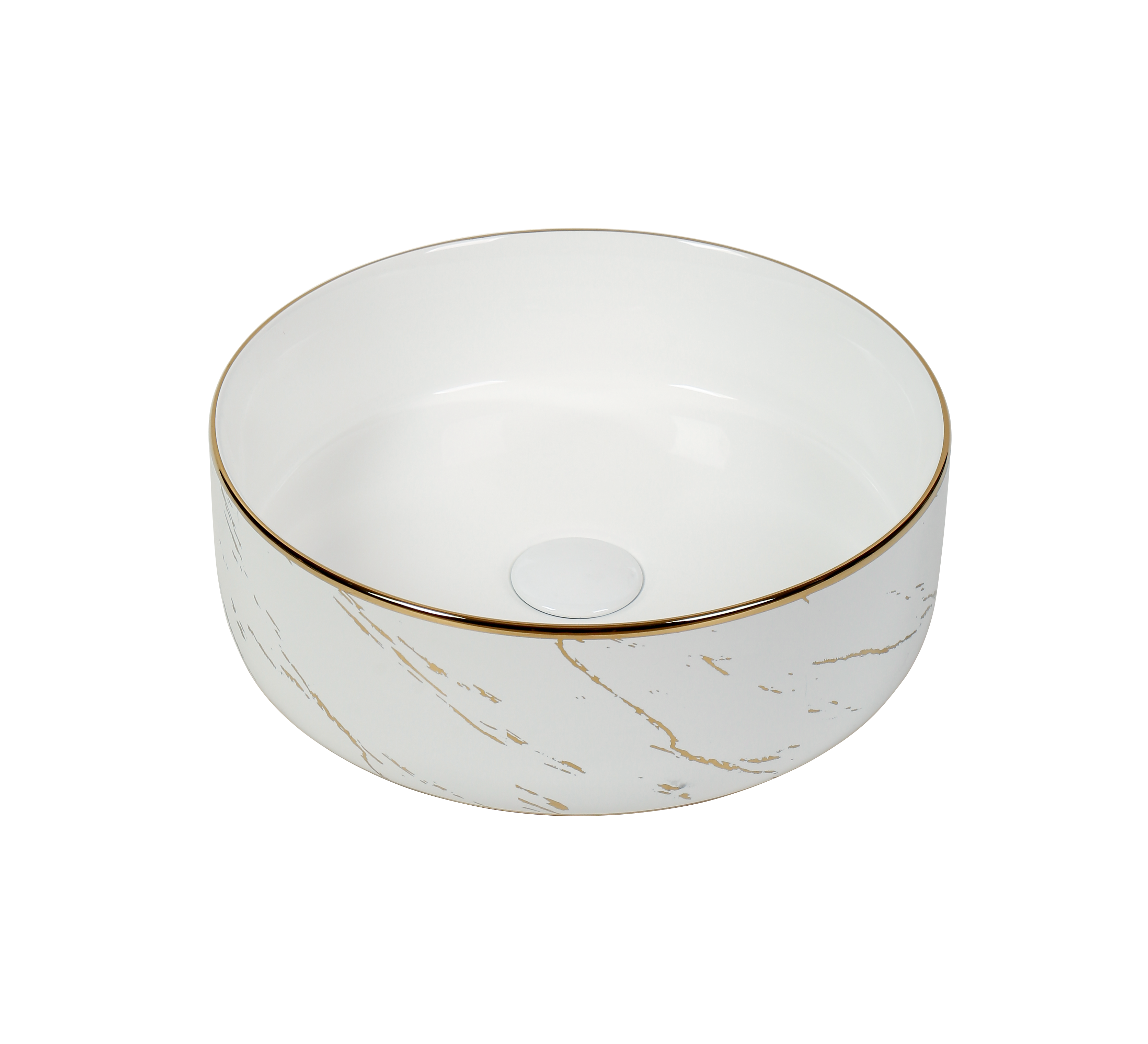 Lavoar rotund ceramic A524B-KG268 – alb marmorat cu accente aurii