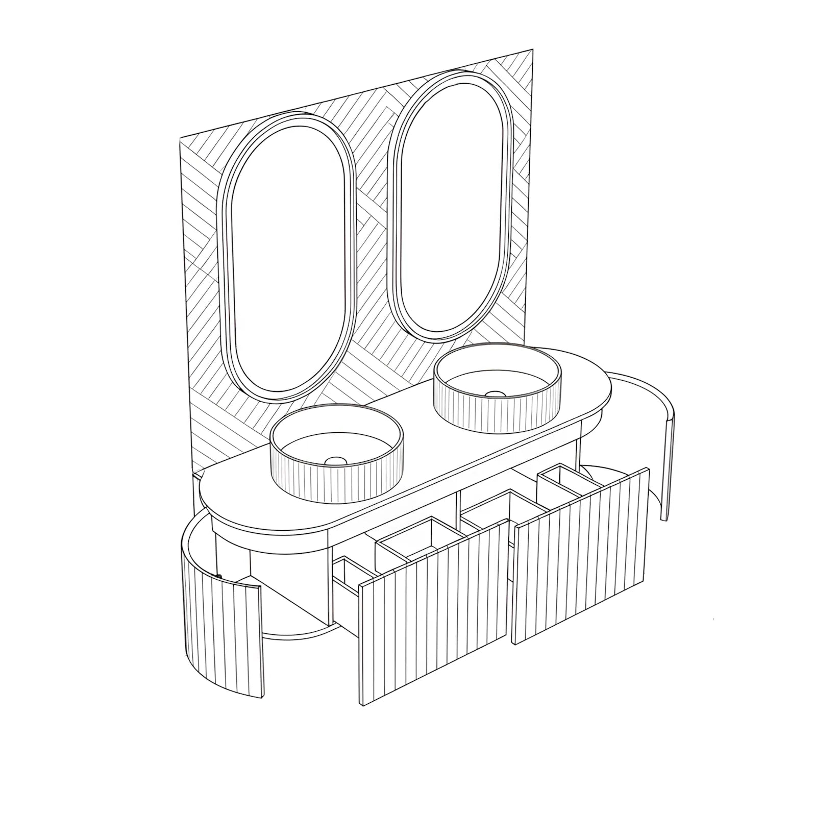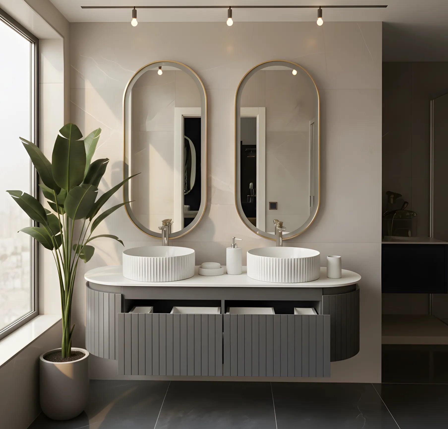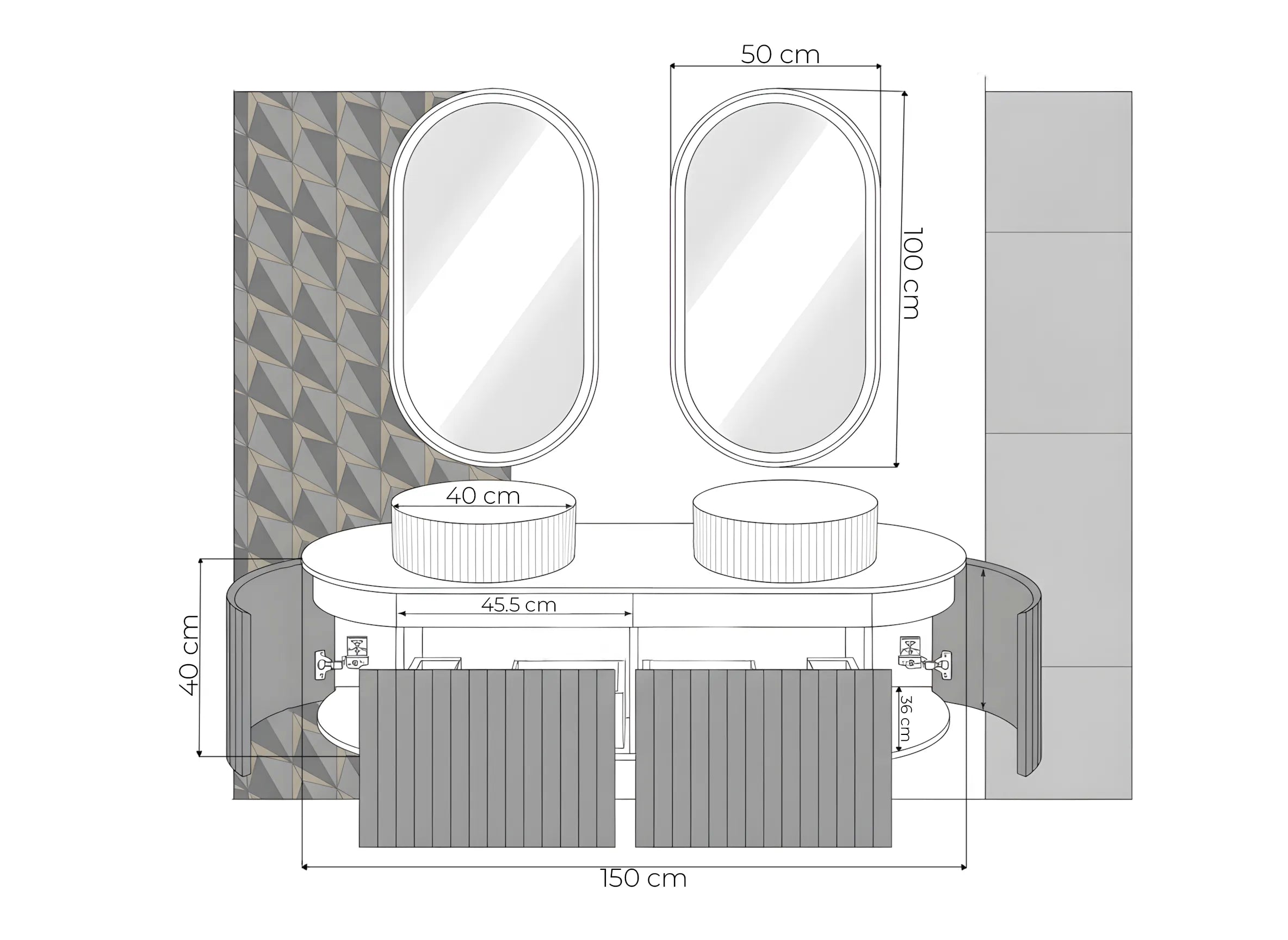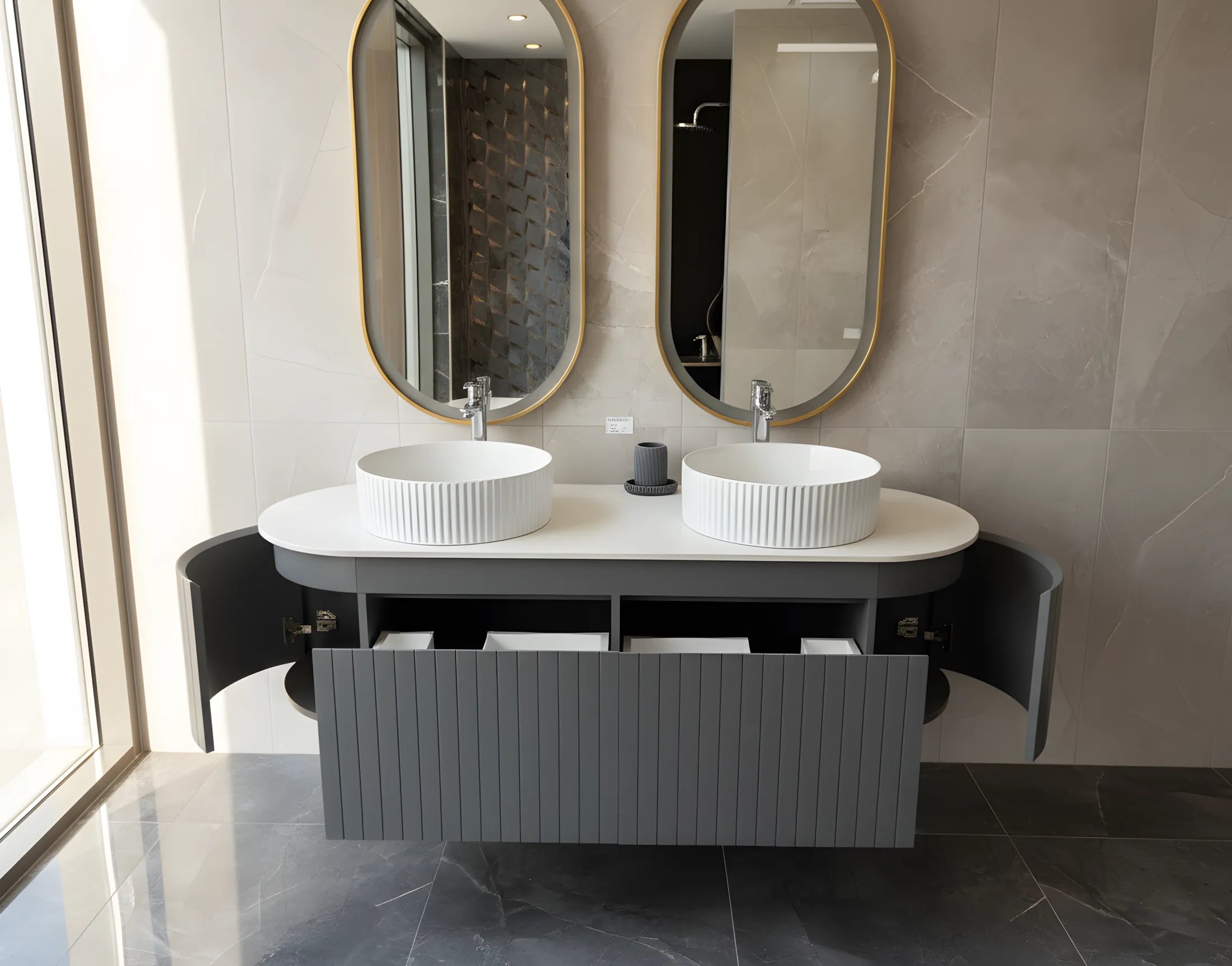 Set Mobilier baie suspendat dublu cu lavoare și oglinzi LED – Design modern, 150 cm