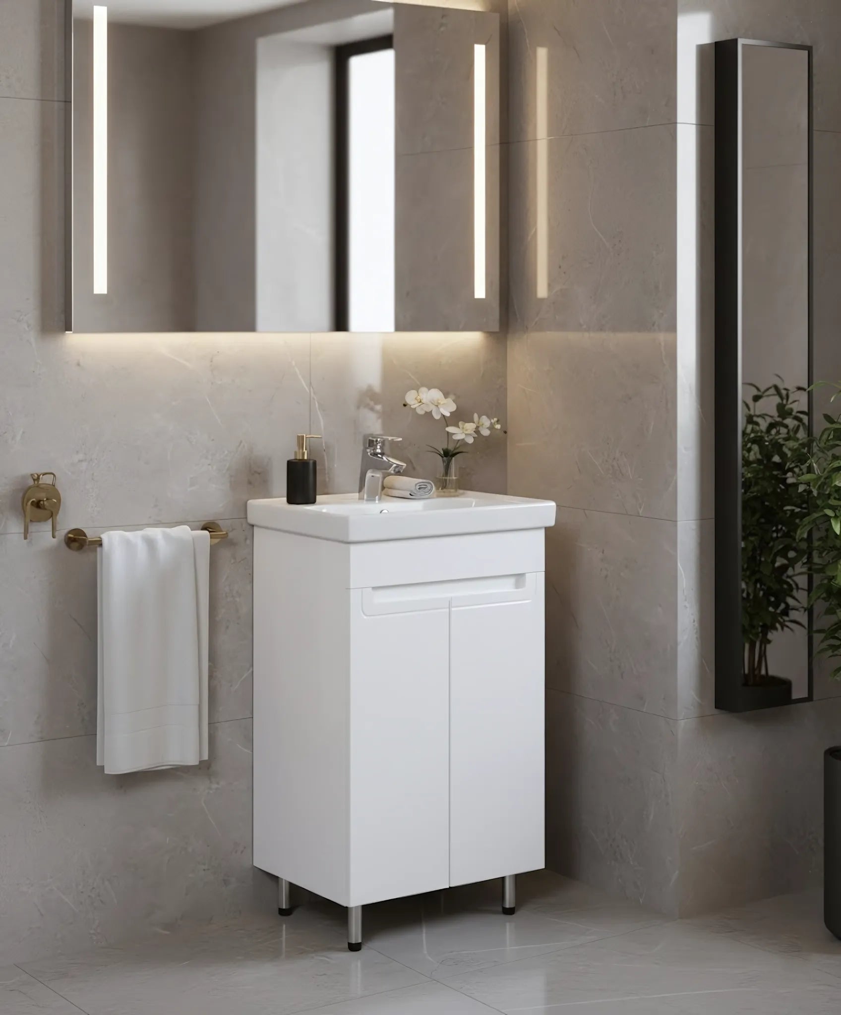Set baie Omega – mască pe pardoseală cu lavoar ceramic