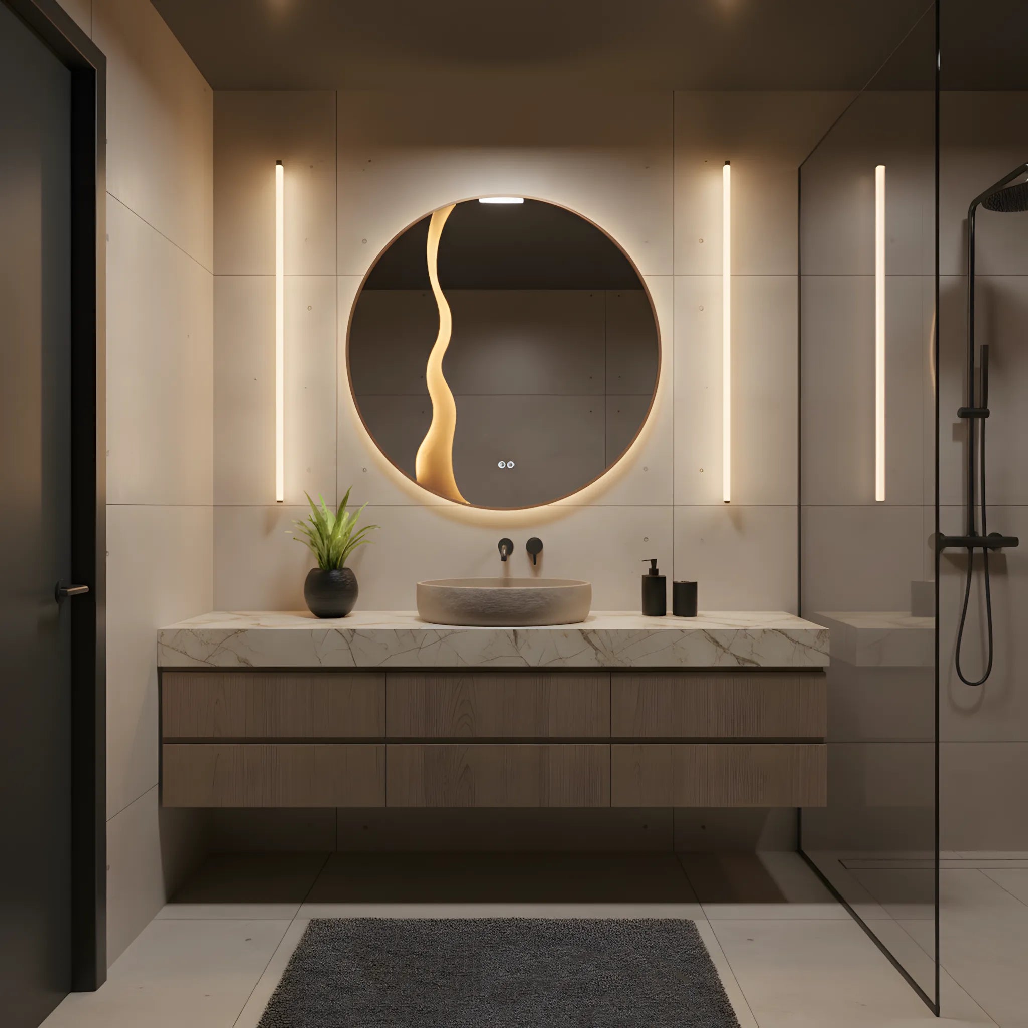 Această oglindă este mai mult decât un obiect funcțional – este o piesă de design ce transformă baia într-un spațiu modern și elegant. Combinația dintre tehnologia LED și designul artistic o face ideală pentru locuințe contemporane.