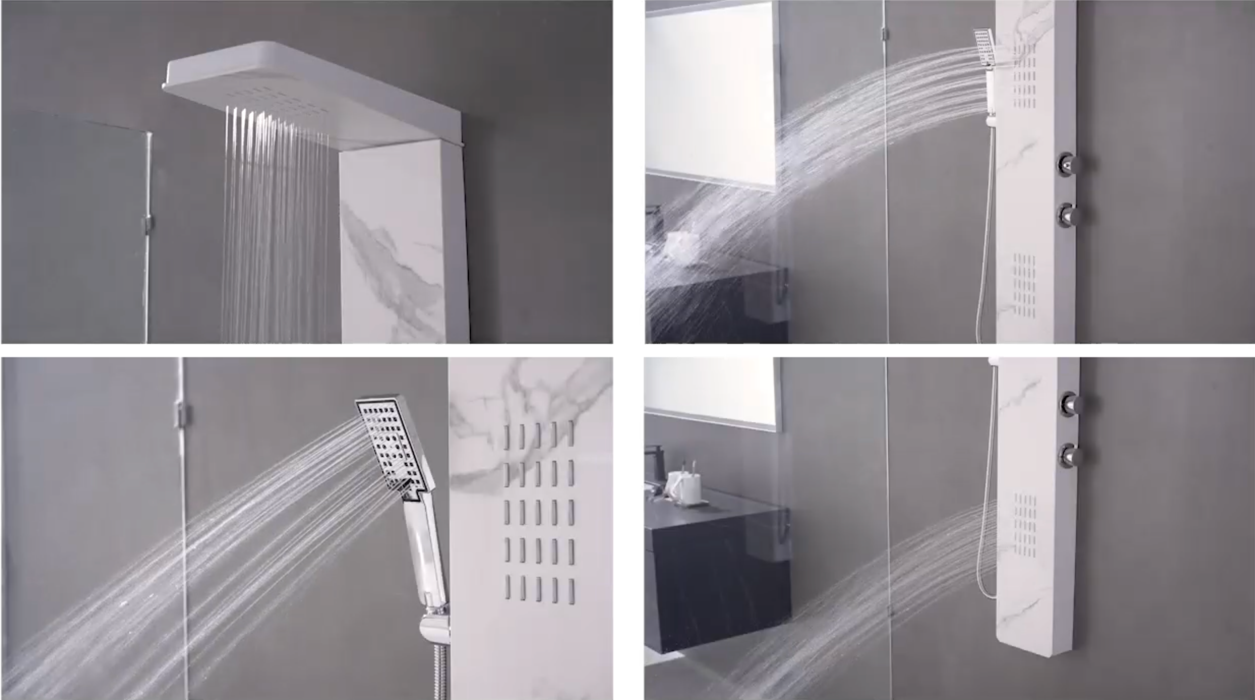 Panel de Duș Marble White – Design Modern cu Duș Fix, Hidromasaj și Duș de Mână