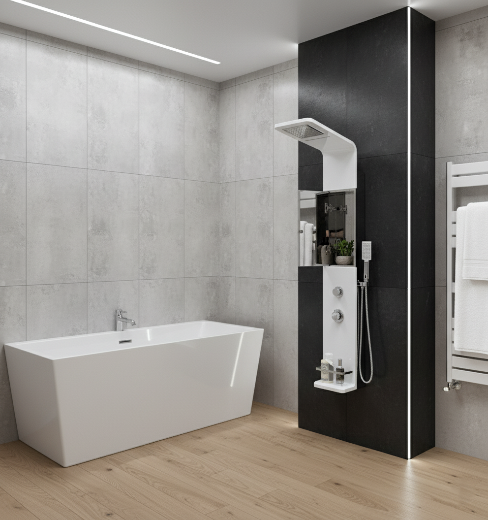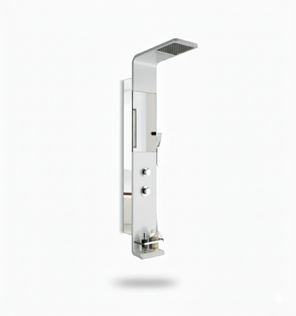Panel de Duș Modern Alb Lucios – Design Minimalist cu Duș Fix și Accesorii Incluse
