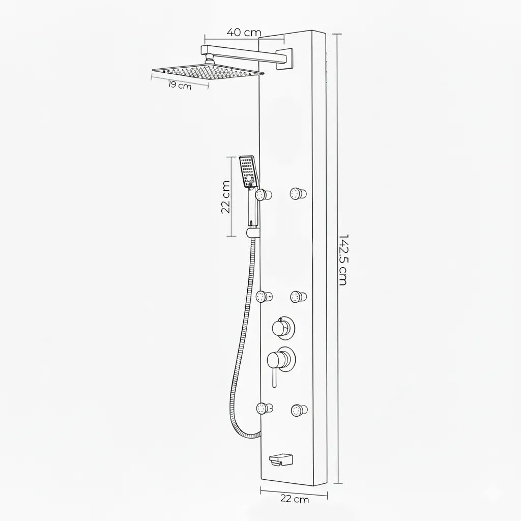 Panel de Duș Marble White – Design Premium cu Jeturi Multiple de Hidromasaj și Duș Fix