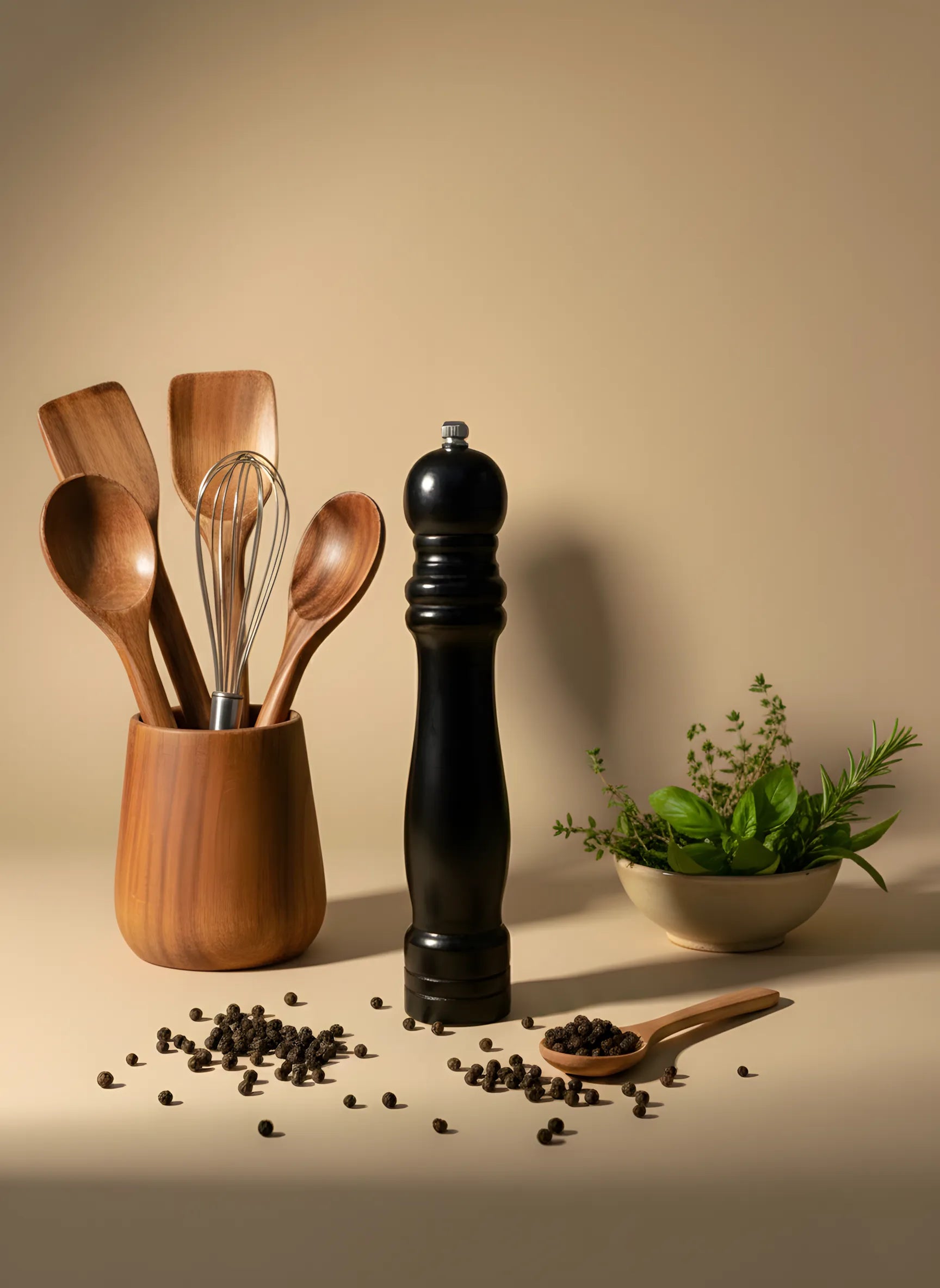 Râșniță din lemn pentru piper, 25 cm, negru mat