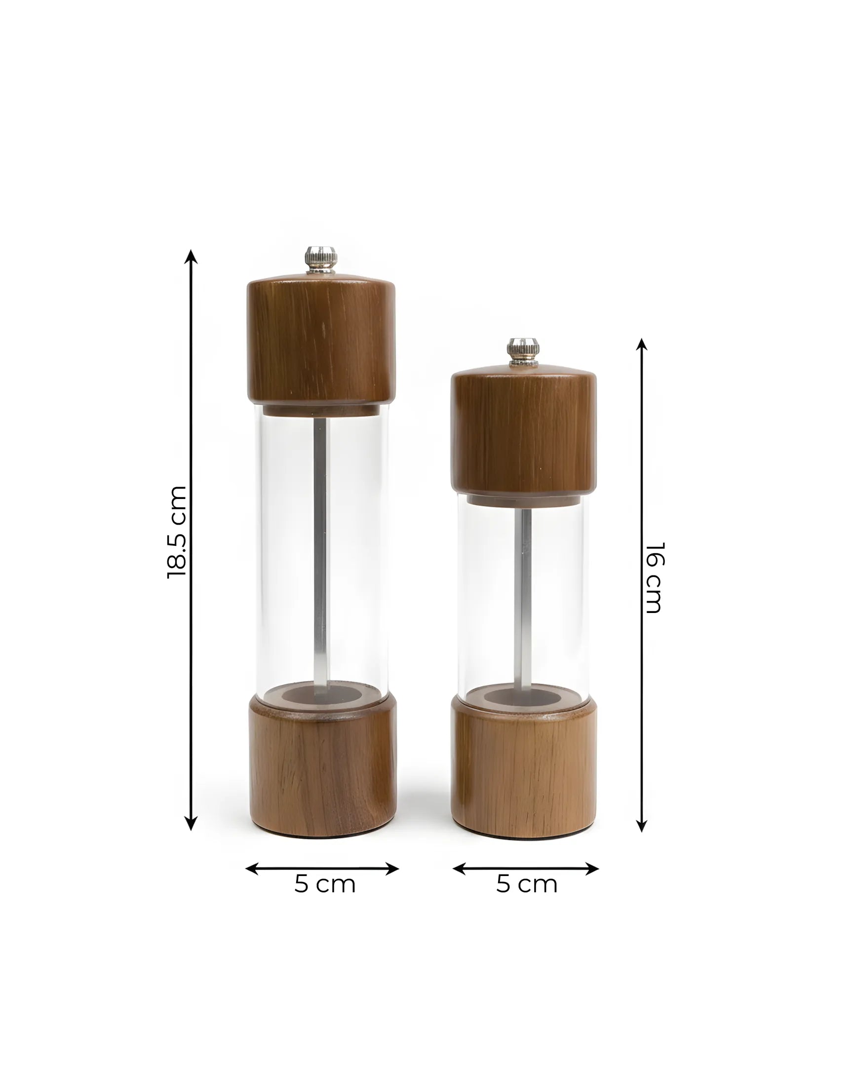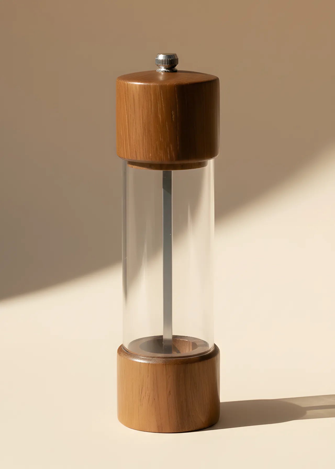 Râșniță sare din lemn, acril și oțel inoxidabil, 18.5×5 cm