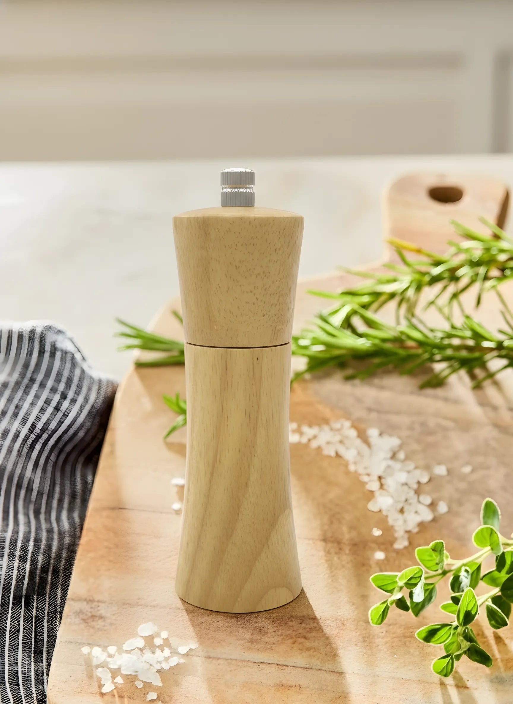 Râșniță sare/piper din lemn, 15 cm, mecanism din inox reglabil, natur