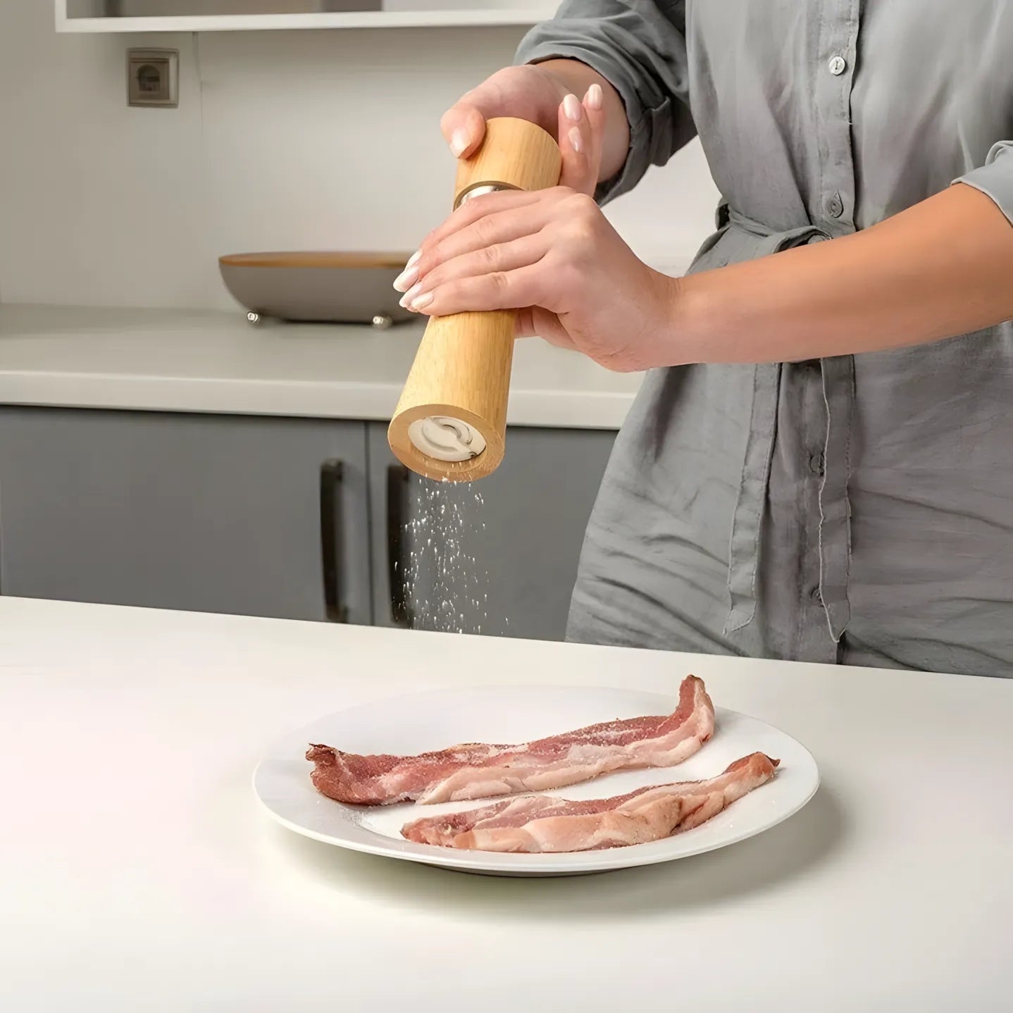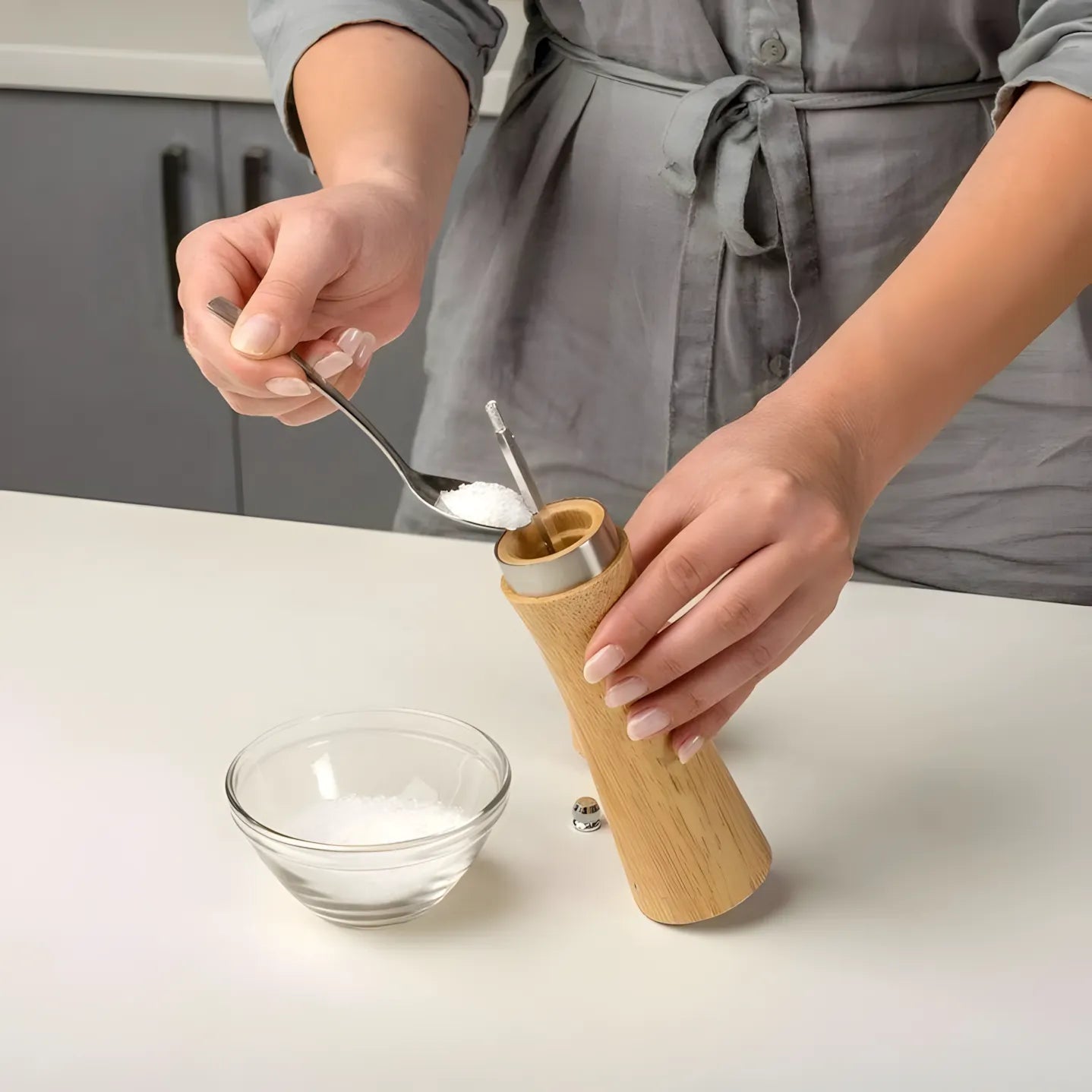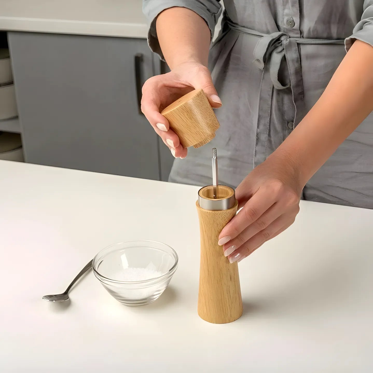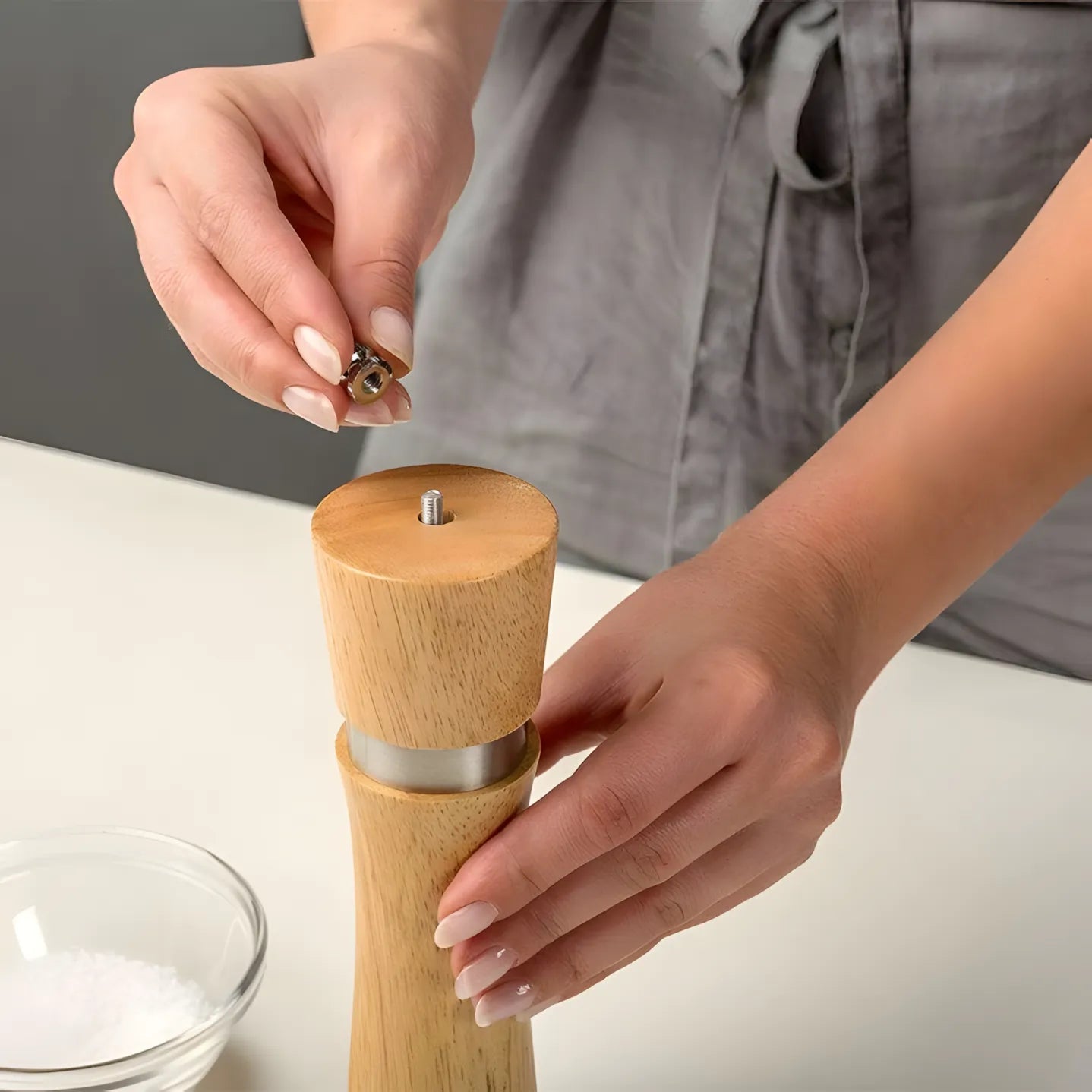 Râșniță sare/piper din lemn, 16 cm, mecanism metalic reglabil, natur dark