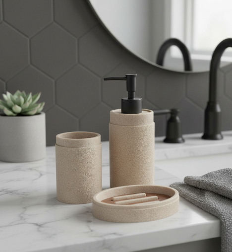 Set 3 piese accesorii de baie bej texturat