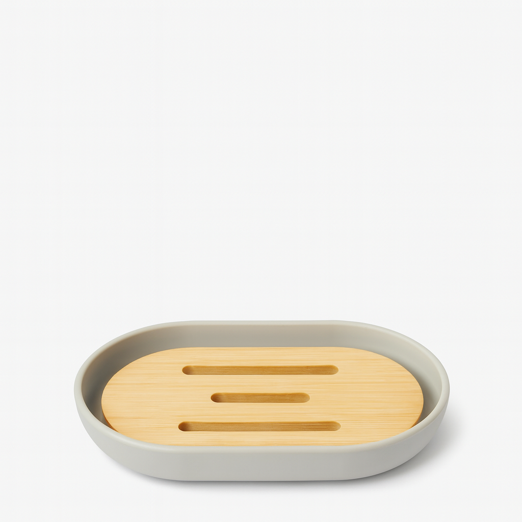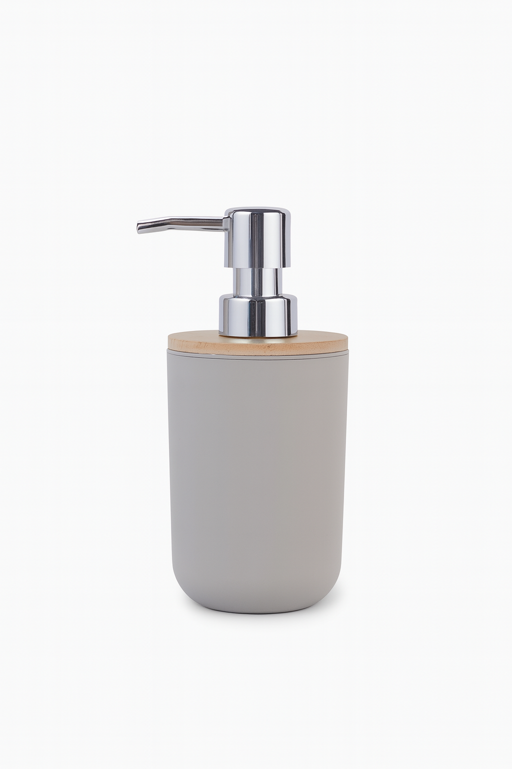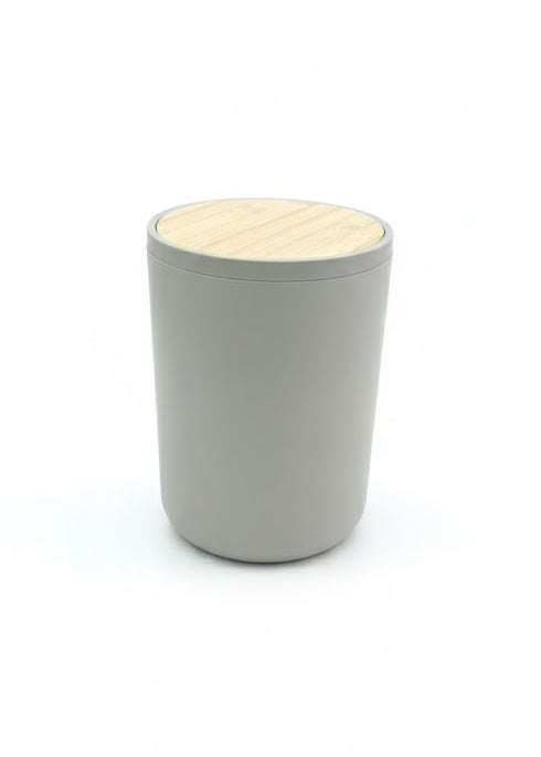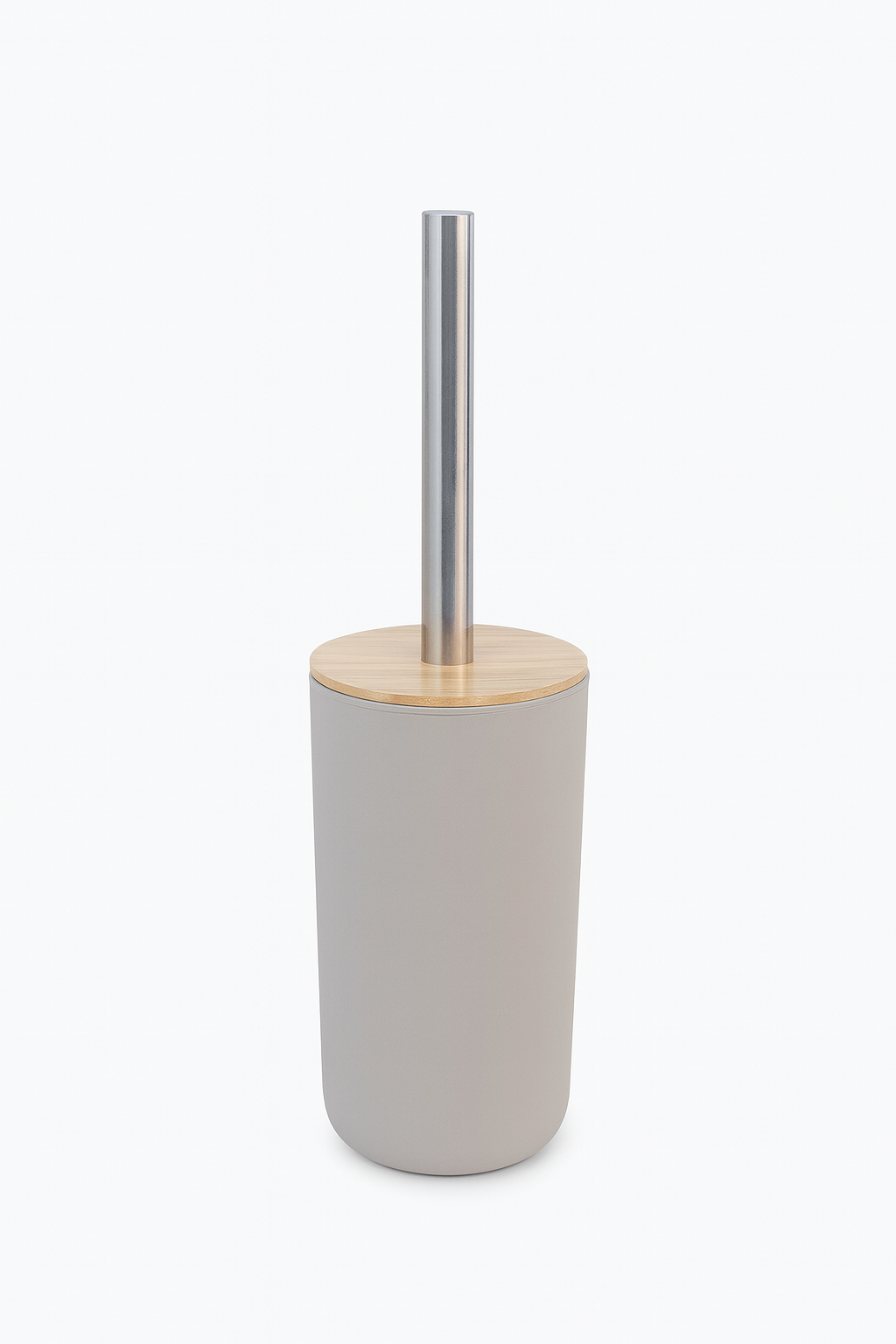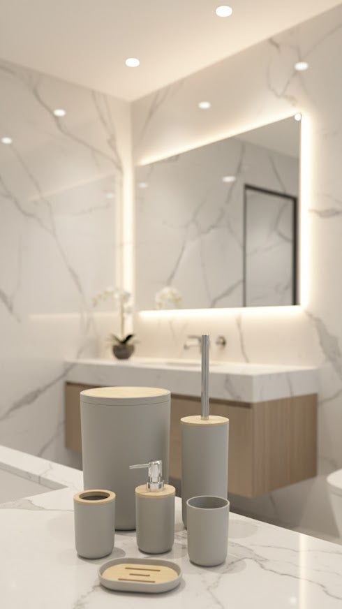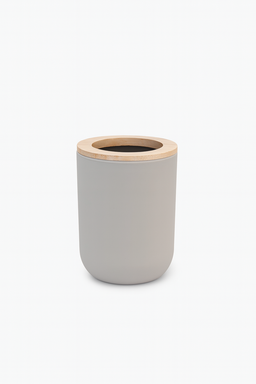 Set accesorii baie, cu accente lemnoase, SANITARY, 6 piese, bej-gri deschis mat