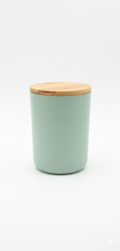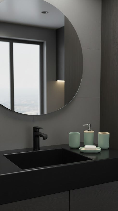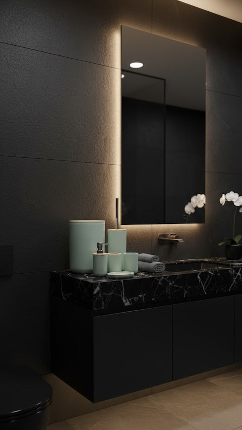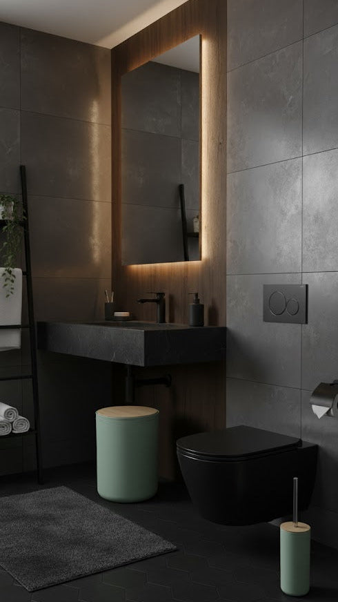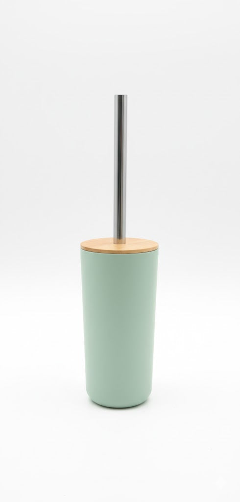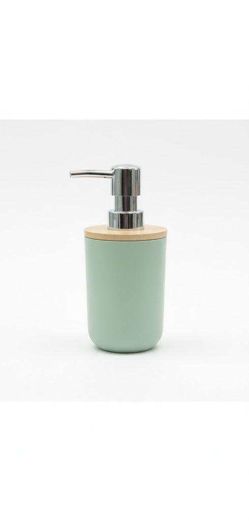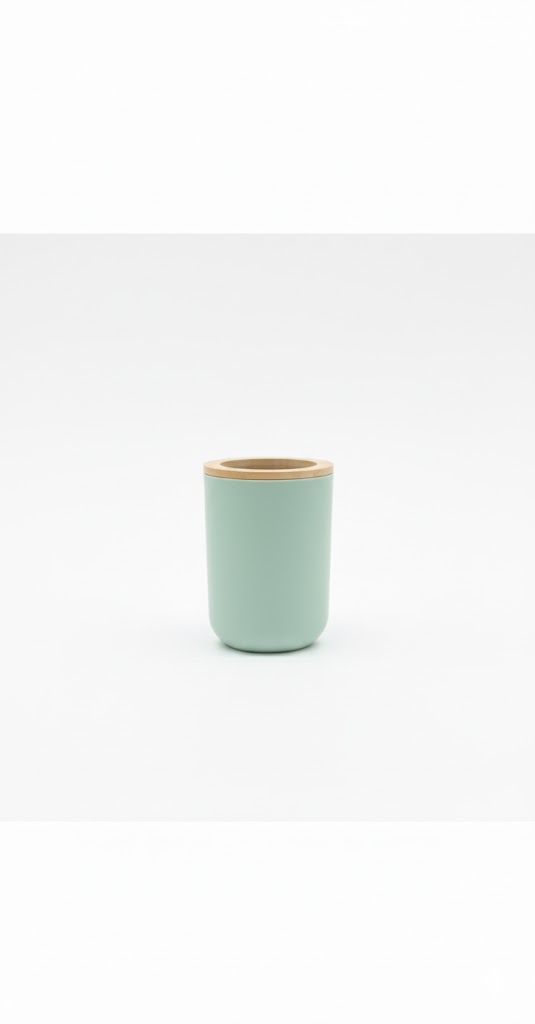 Set accesorii baie, cu accente lemnoase, SANITARY, 6 piese, menta cu detalii bej