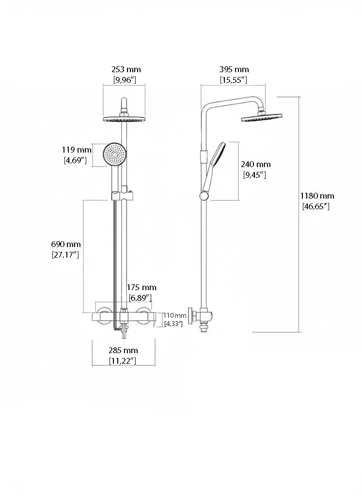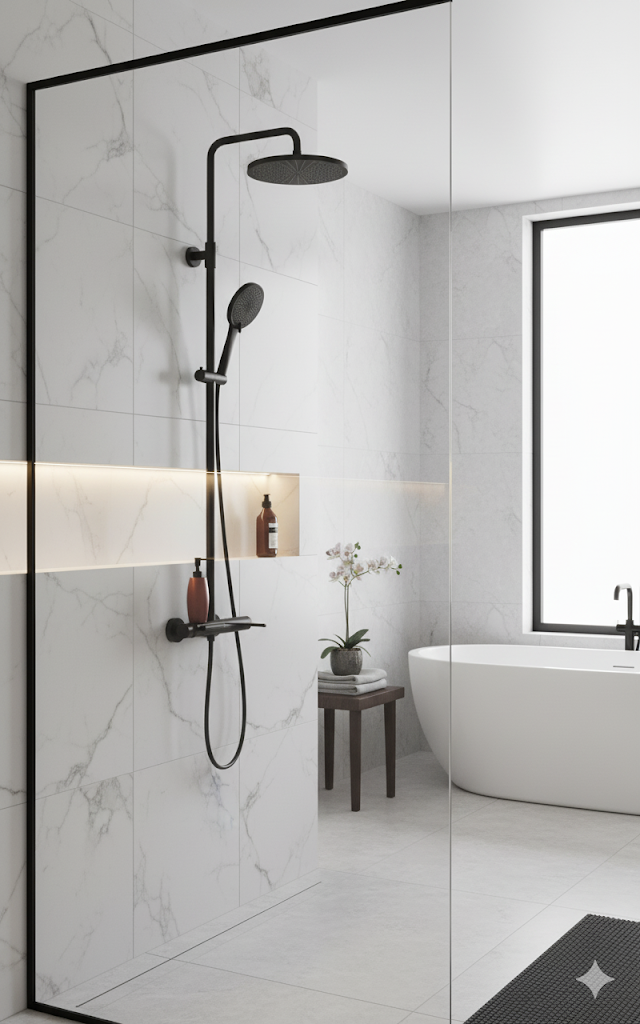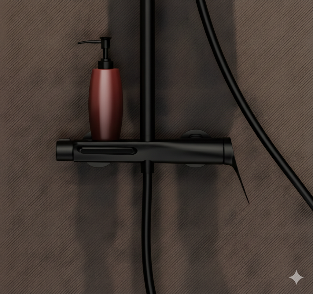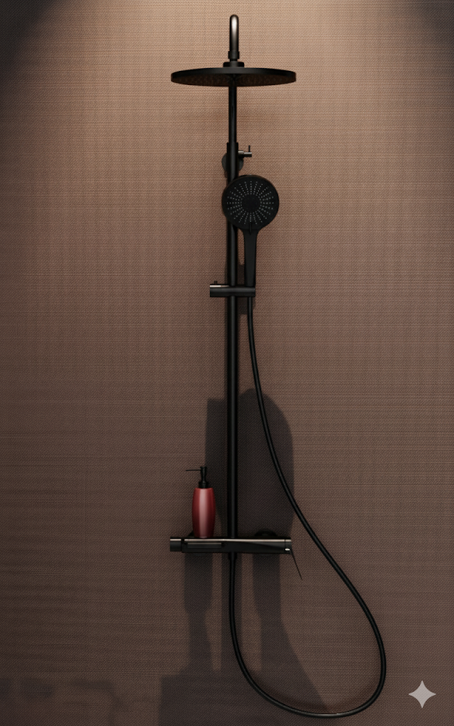 Set duș din alamă cu cioc de cadă integrat – Design premium negru mat