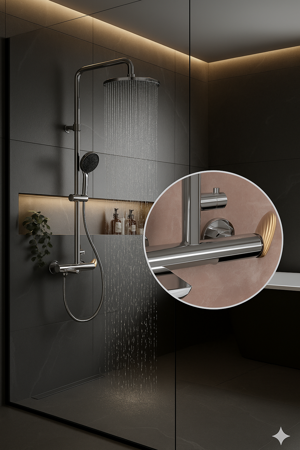 Set duș RoseGold Trio Exposed – 3 căi, montaj aparent