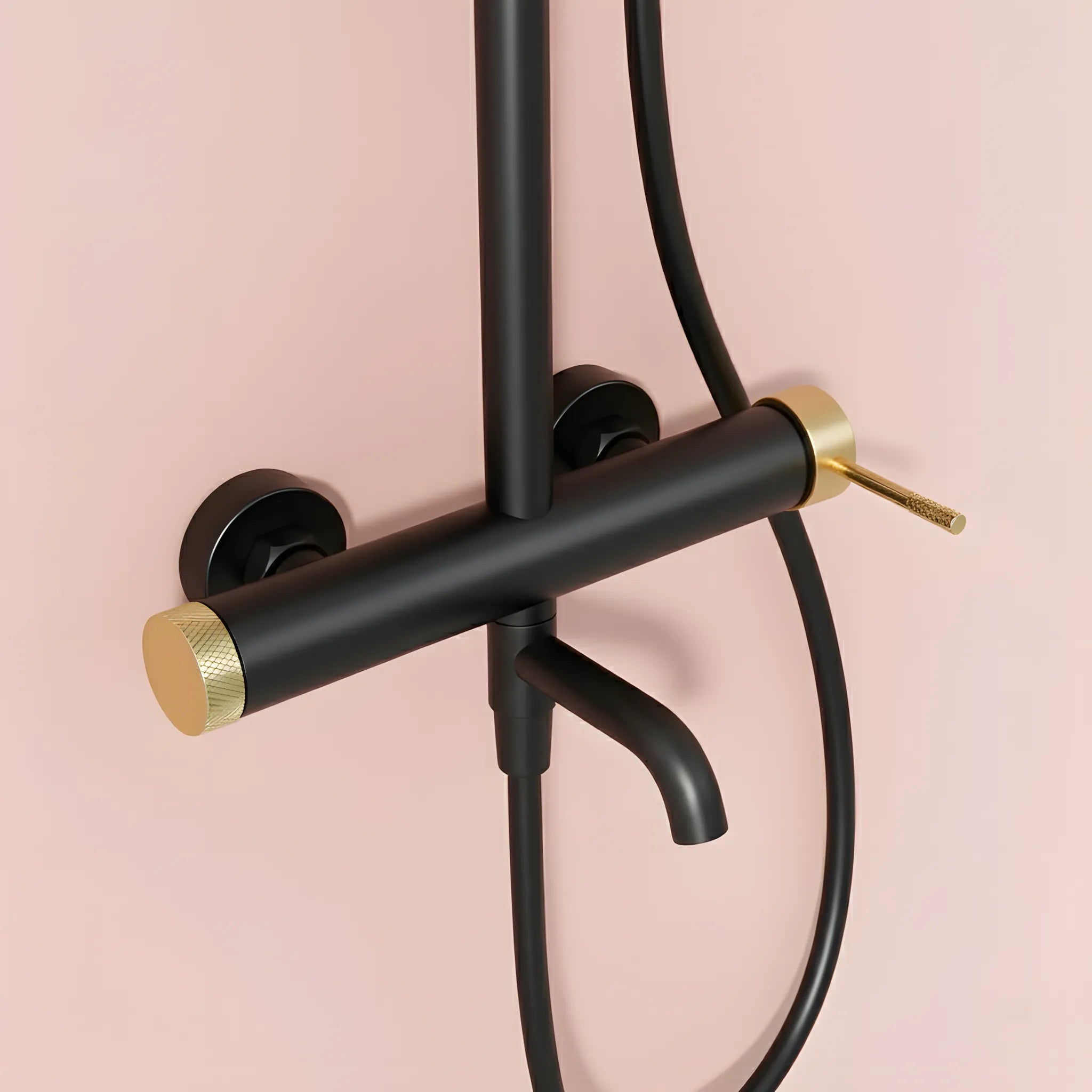 Set duș Royal Black & Gold – design modern cu cioc de cadă și comenzi texturate