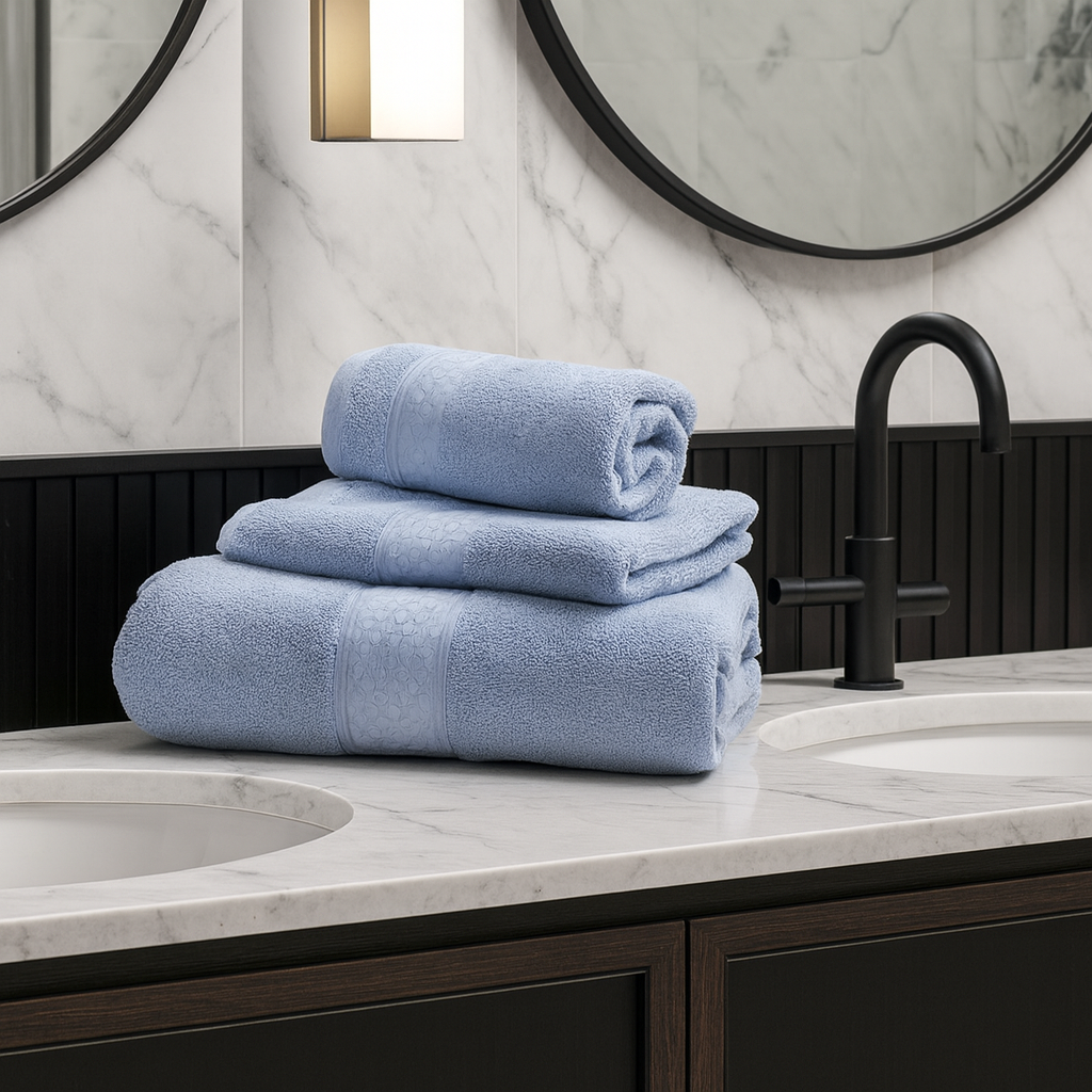 SET PROSOAPE BAIE din bumbac 100%, GRI RECE (cu tentă de albastru), 3 piese, moale și absorbant
