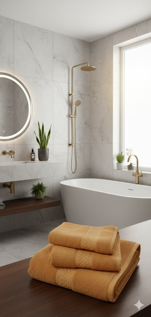 SET PROSOAPE BAIE din bumbac 100%, MUSTAR, 3 piese, moale și absorbant