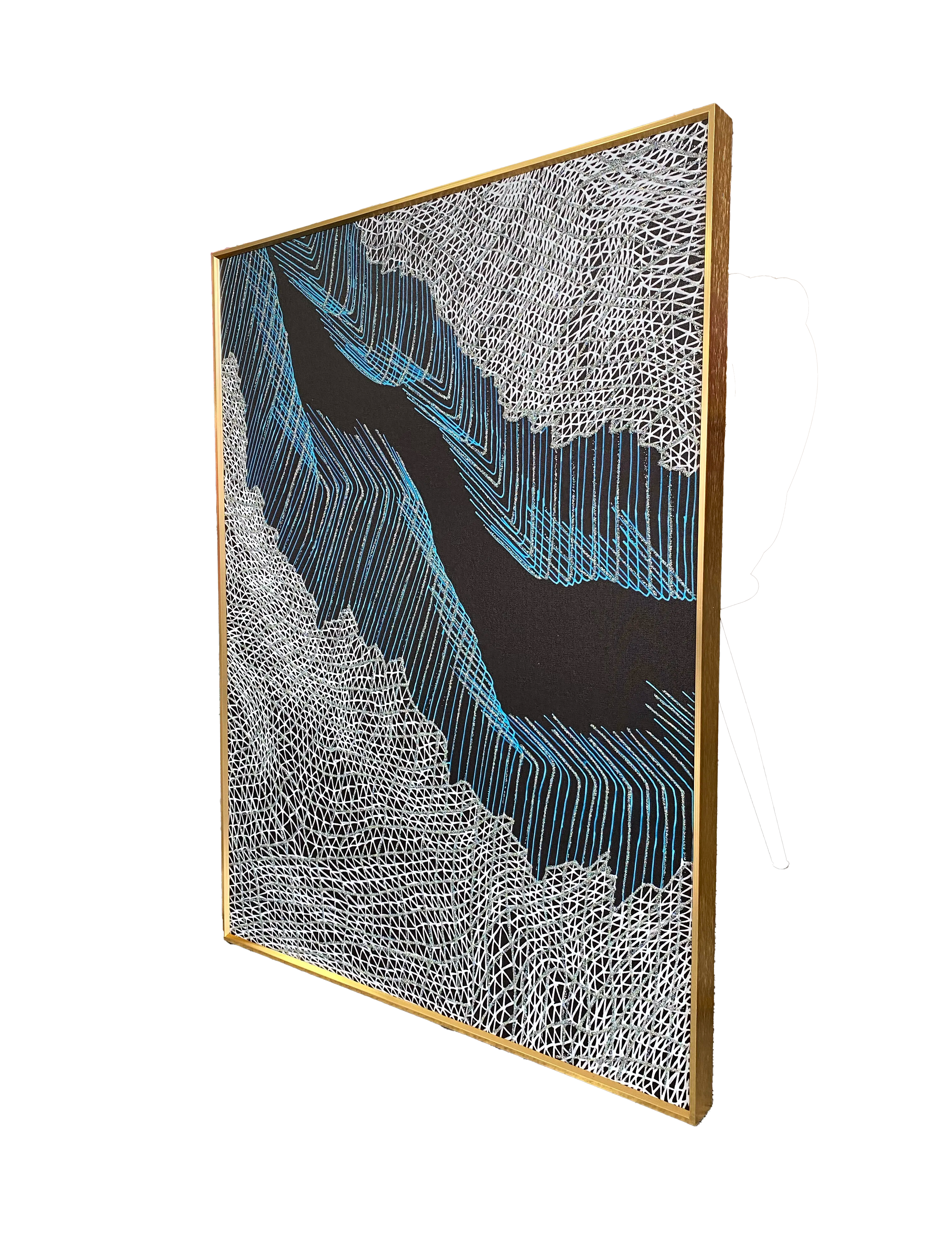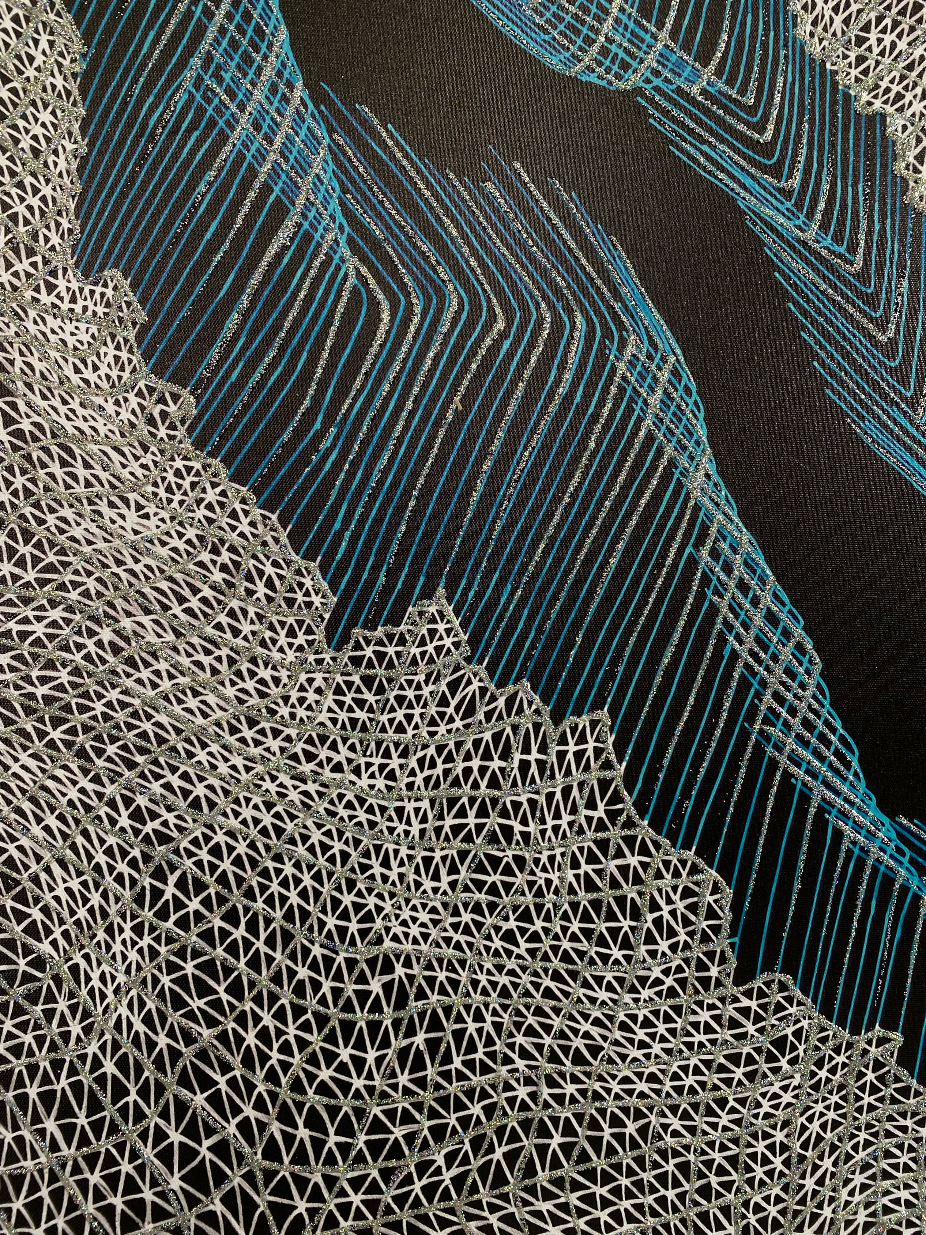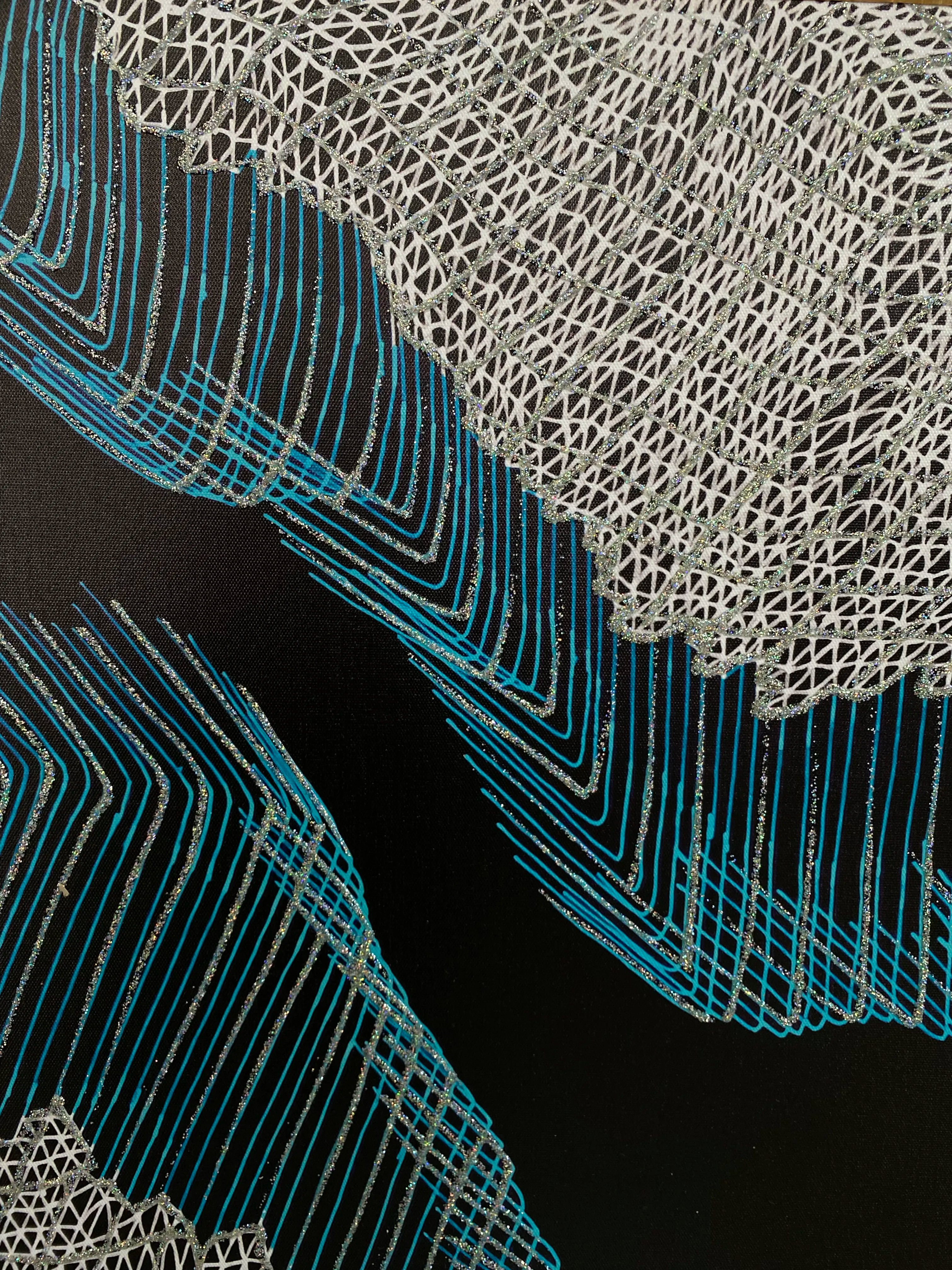 Tablou abstract cu accente albastre și glitter – 80×60 cm | Olivy