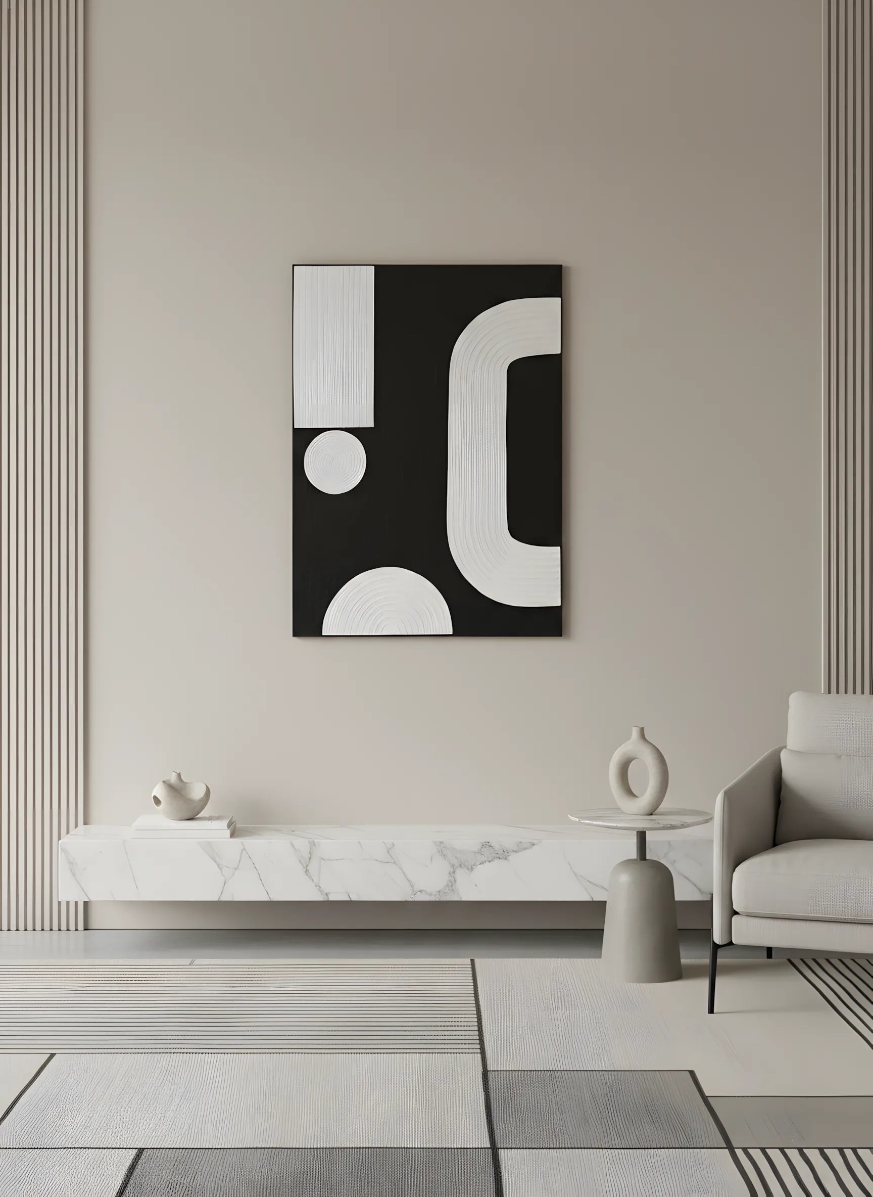 Tablou abstract monocrom 60×80 cm – alb-negru | Olivy