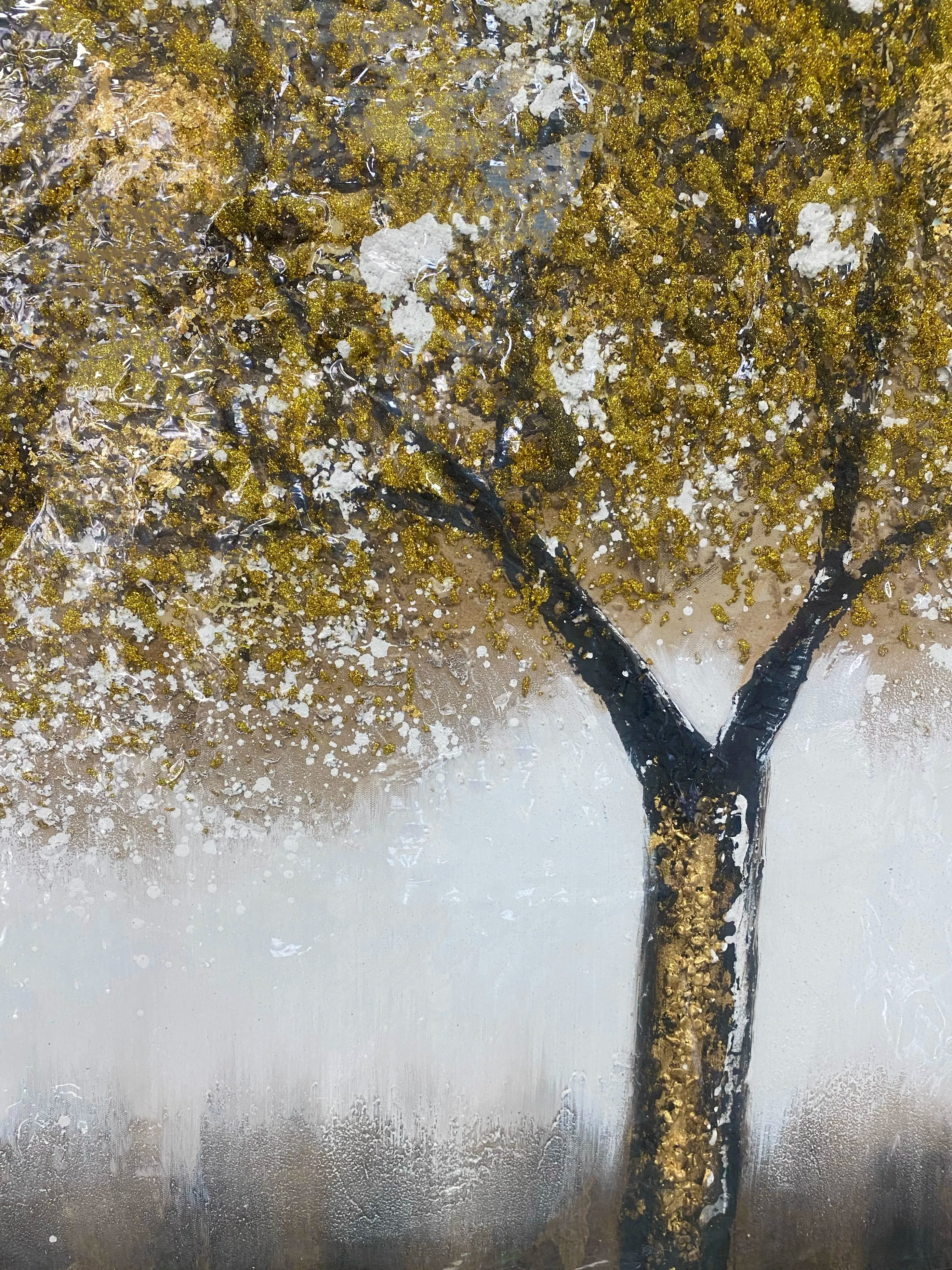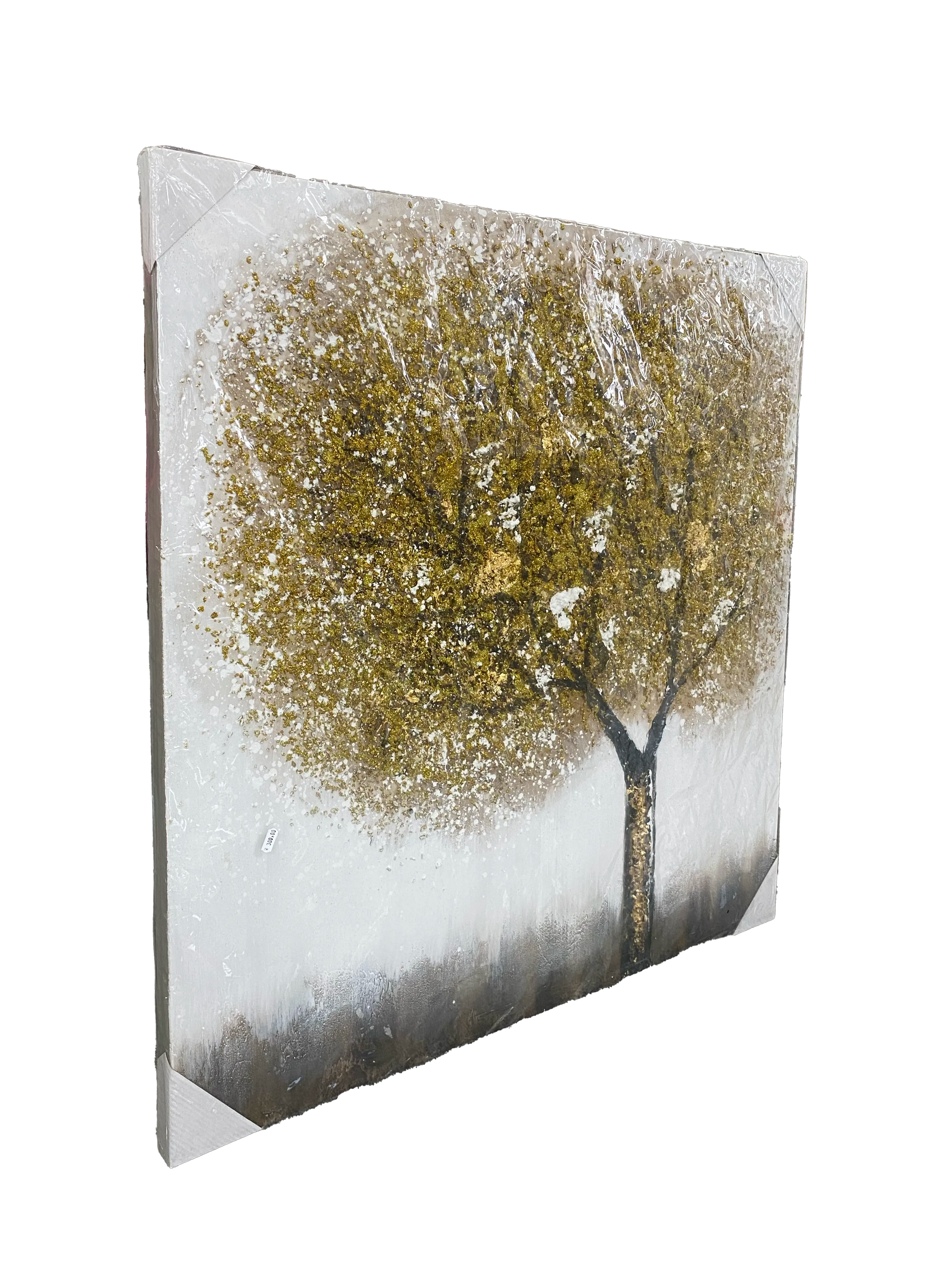 Tablou cu copac auriu în relief – 100×100 cm | Olivy