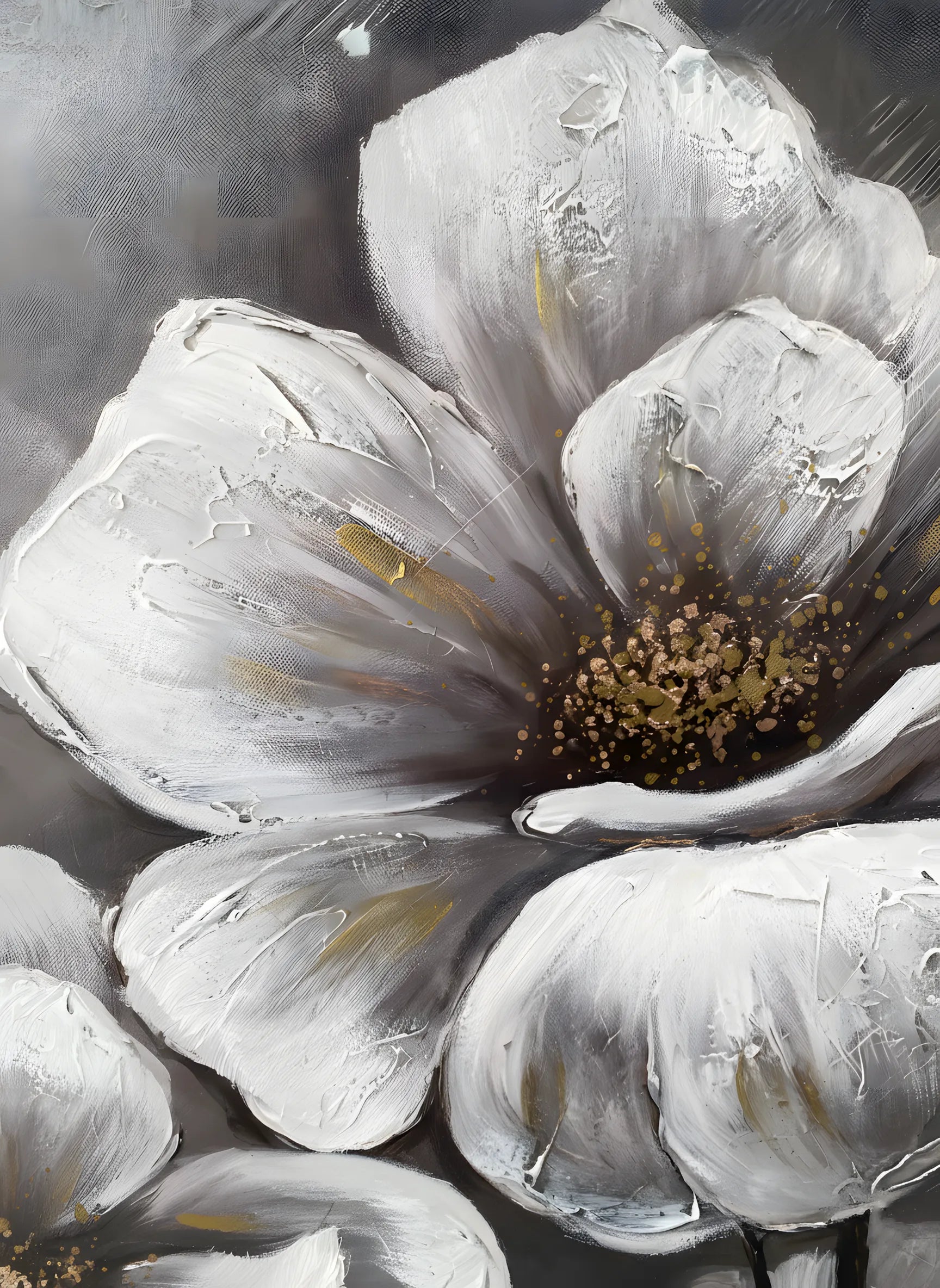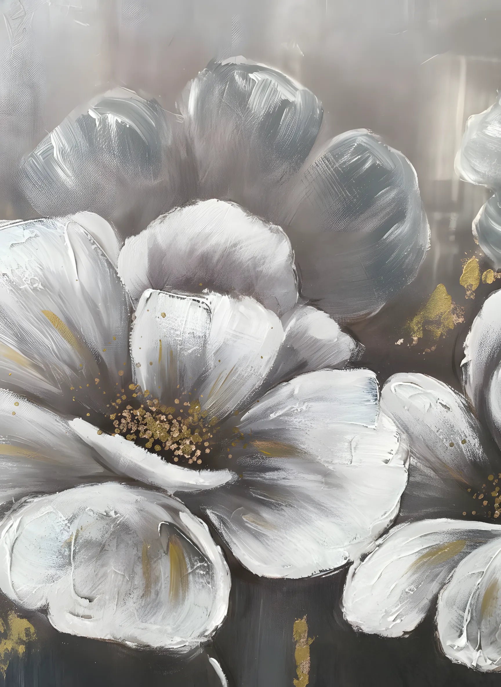 Tablou floral gri cu accente aurii – 70×140 cm | Olivy