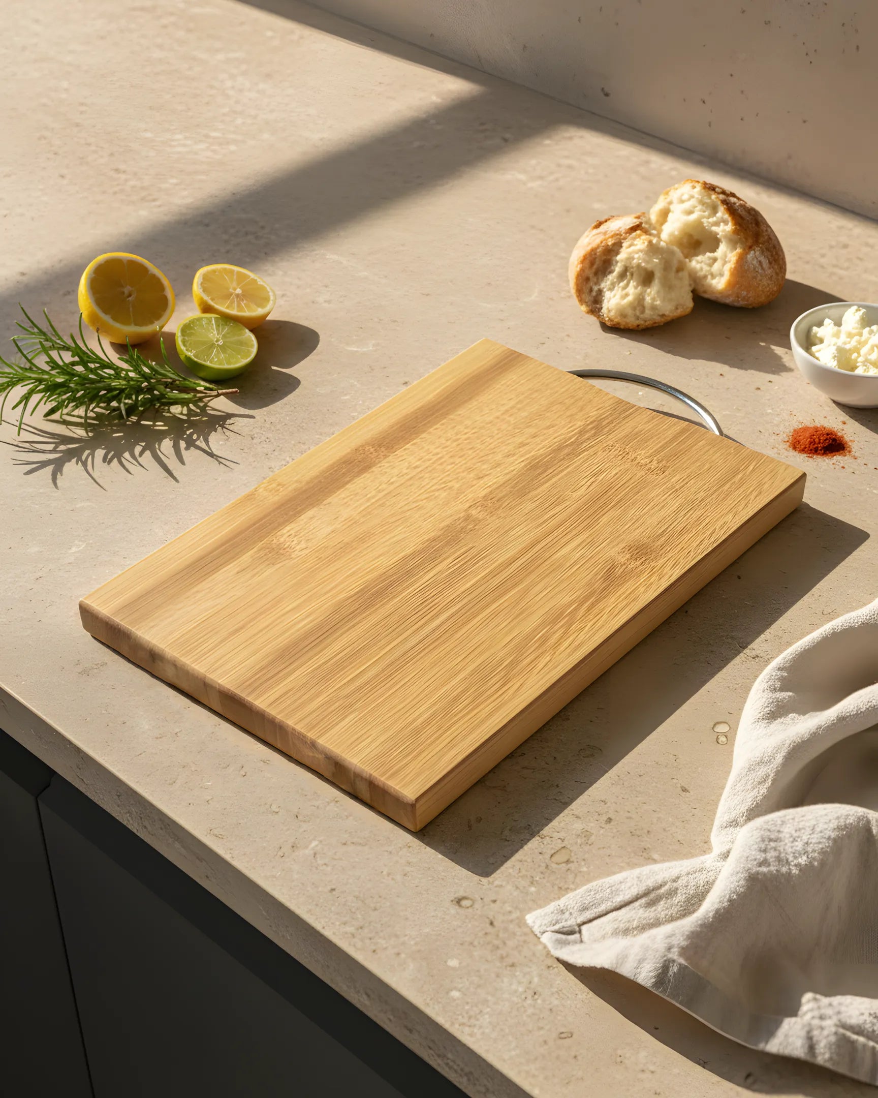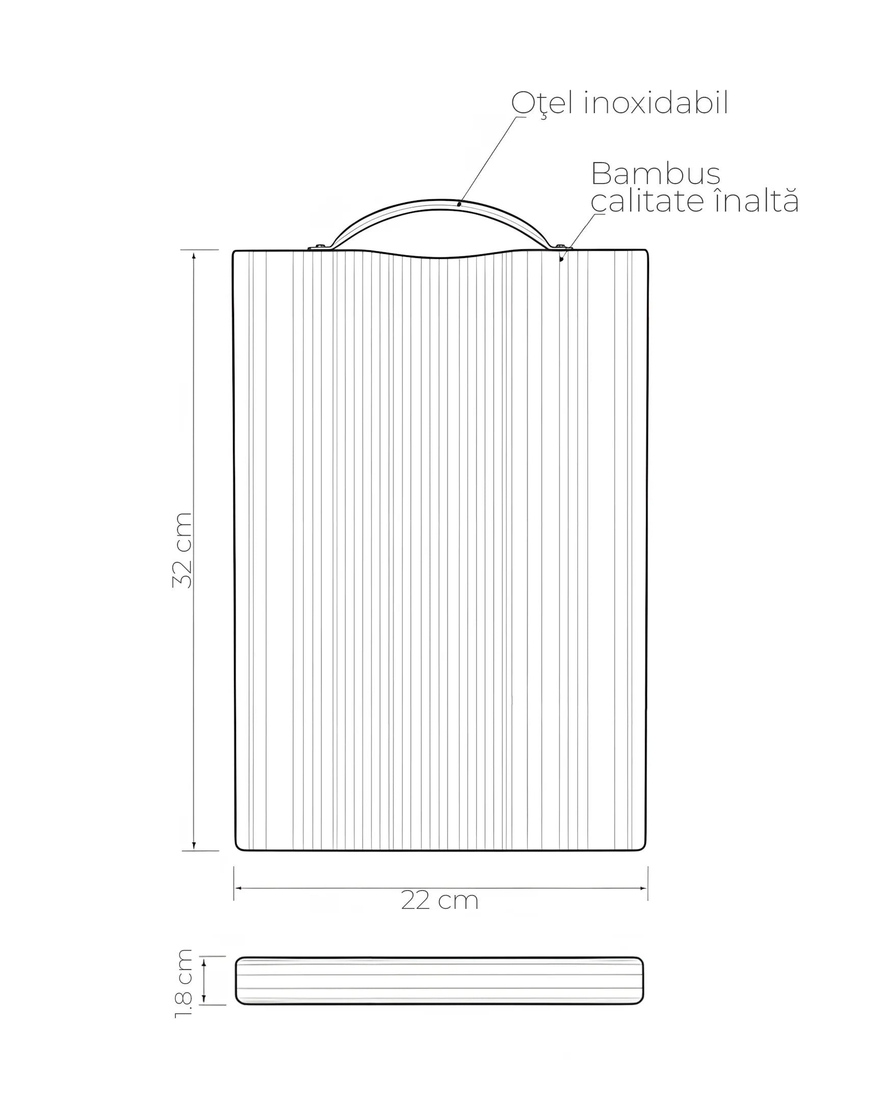 Tocător din bambus cu mâner din oțel inoxidabil, 32×22 cm