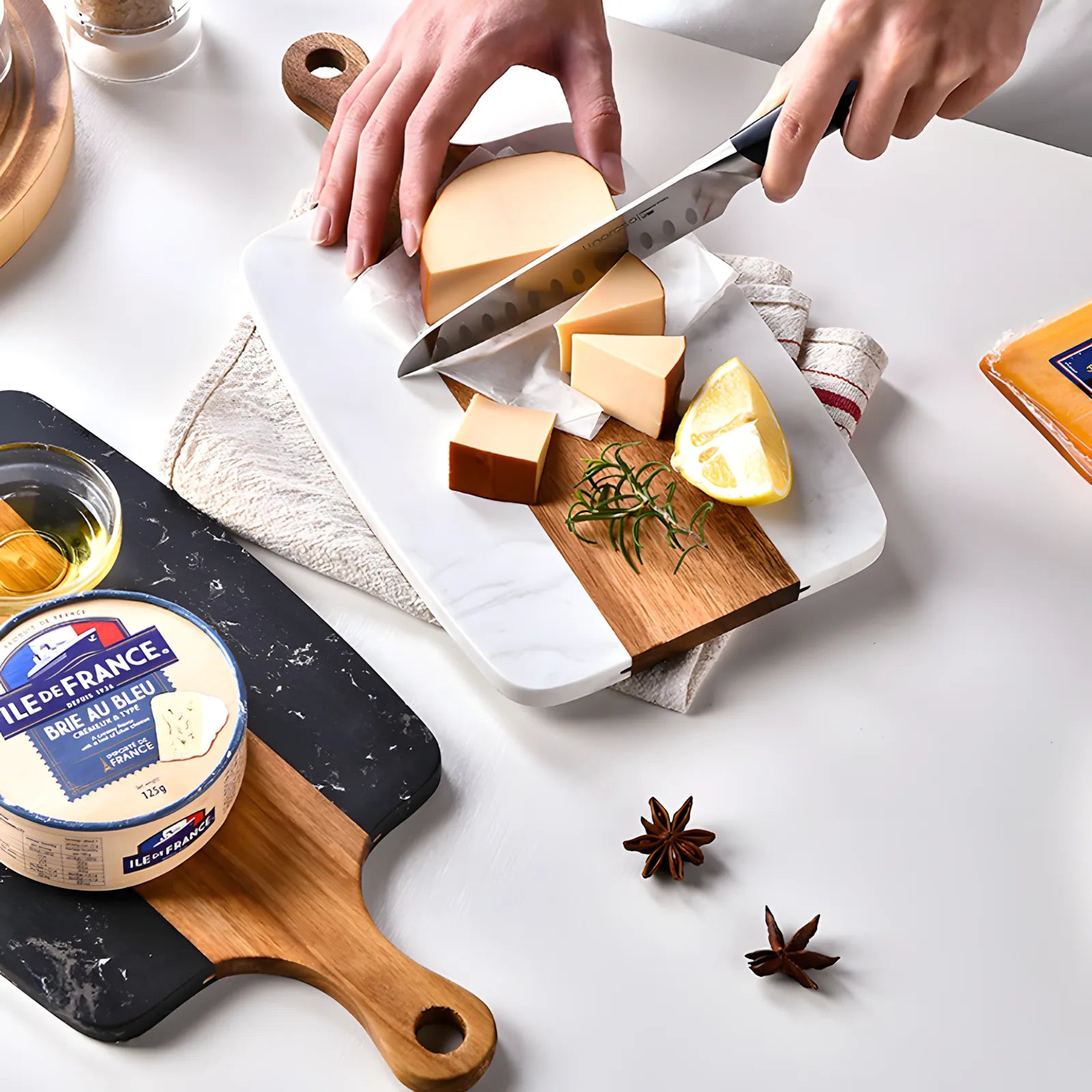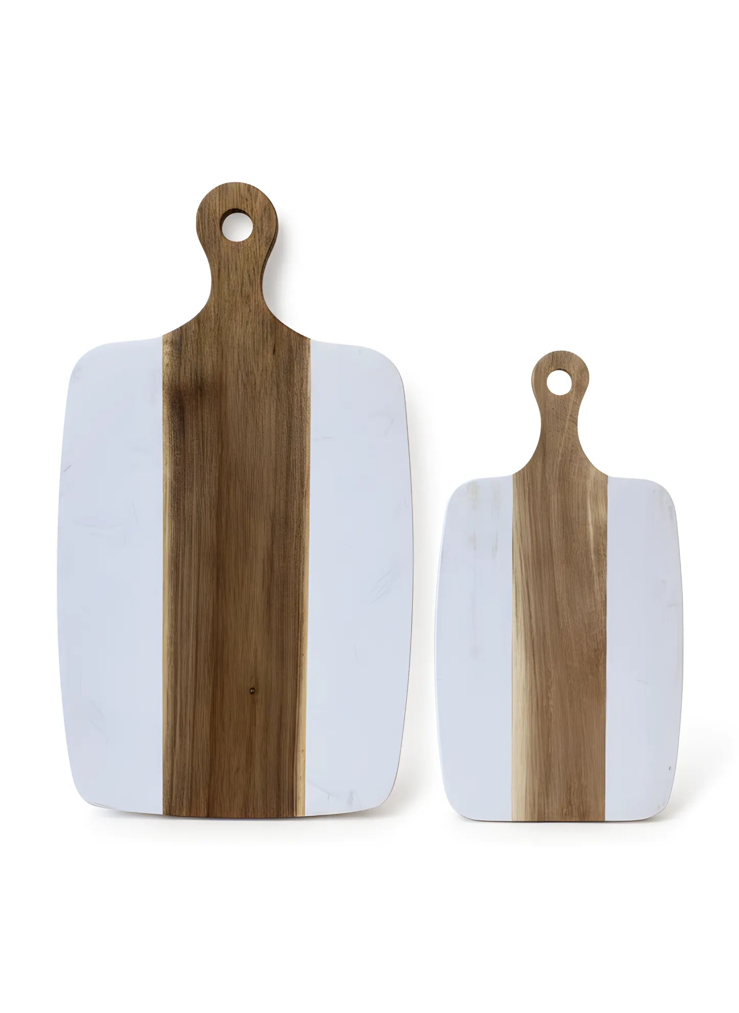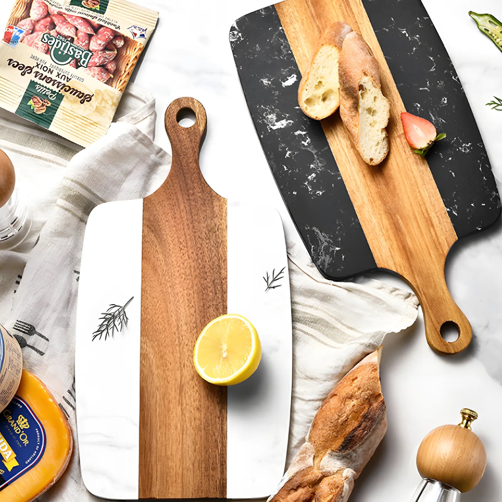 Tocător din lemn de acacia și marmură albă, 40×20 cm, design modern, Olivy