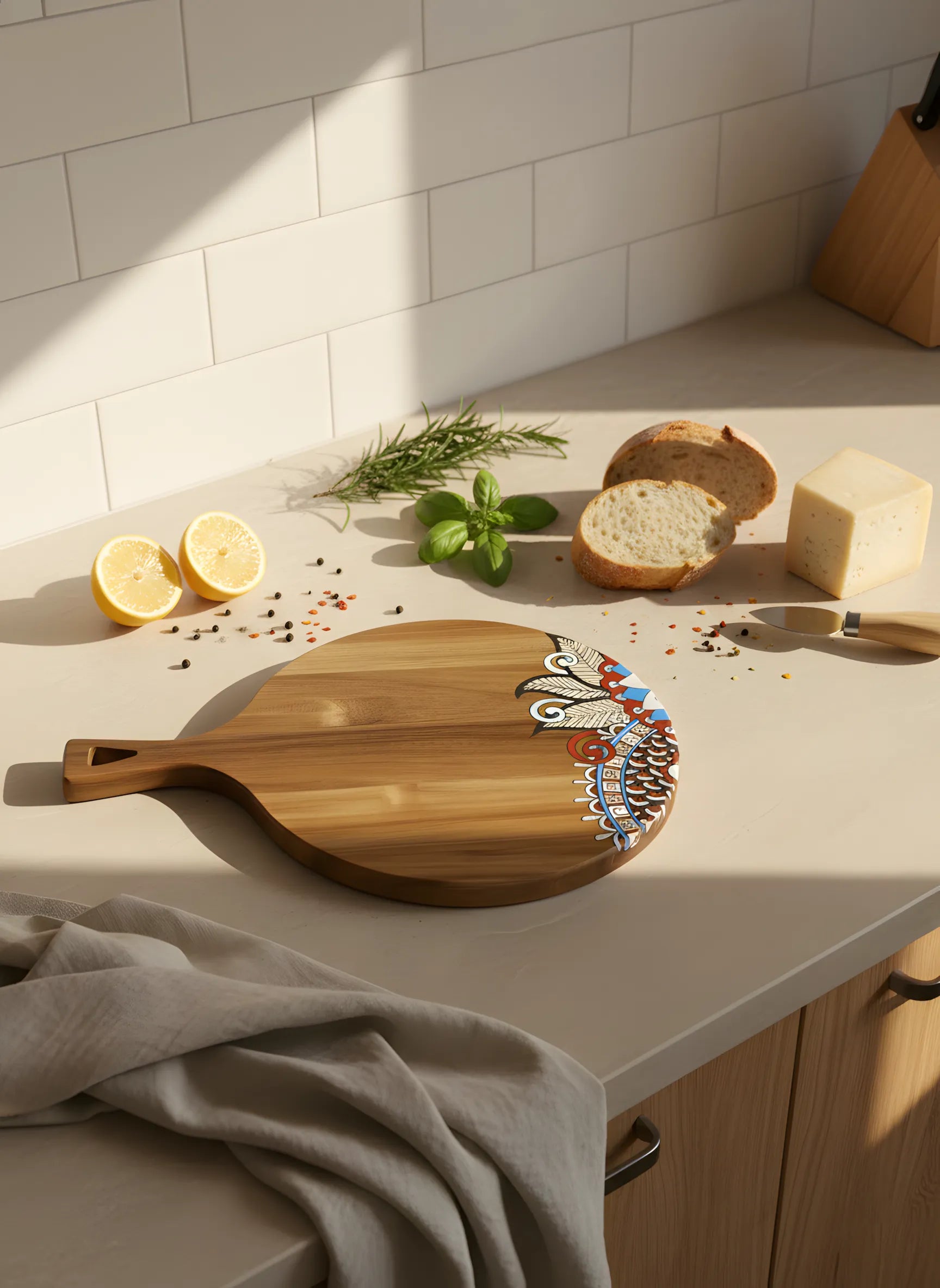 Tocător din lemn, rotund, 37×27 cm, Colecția Mandala – Olivy