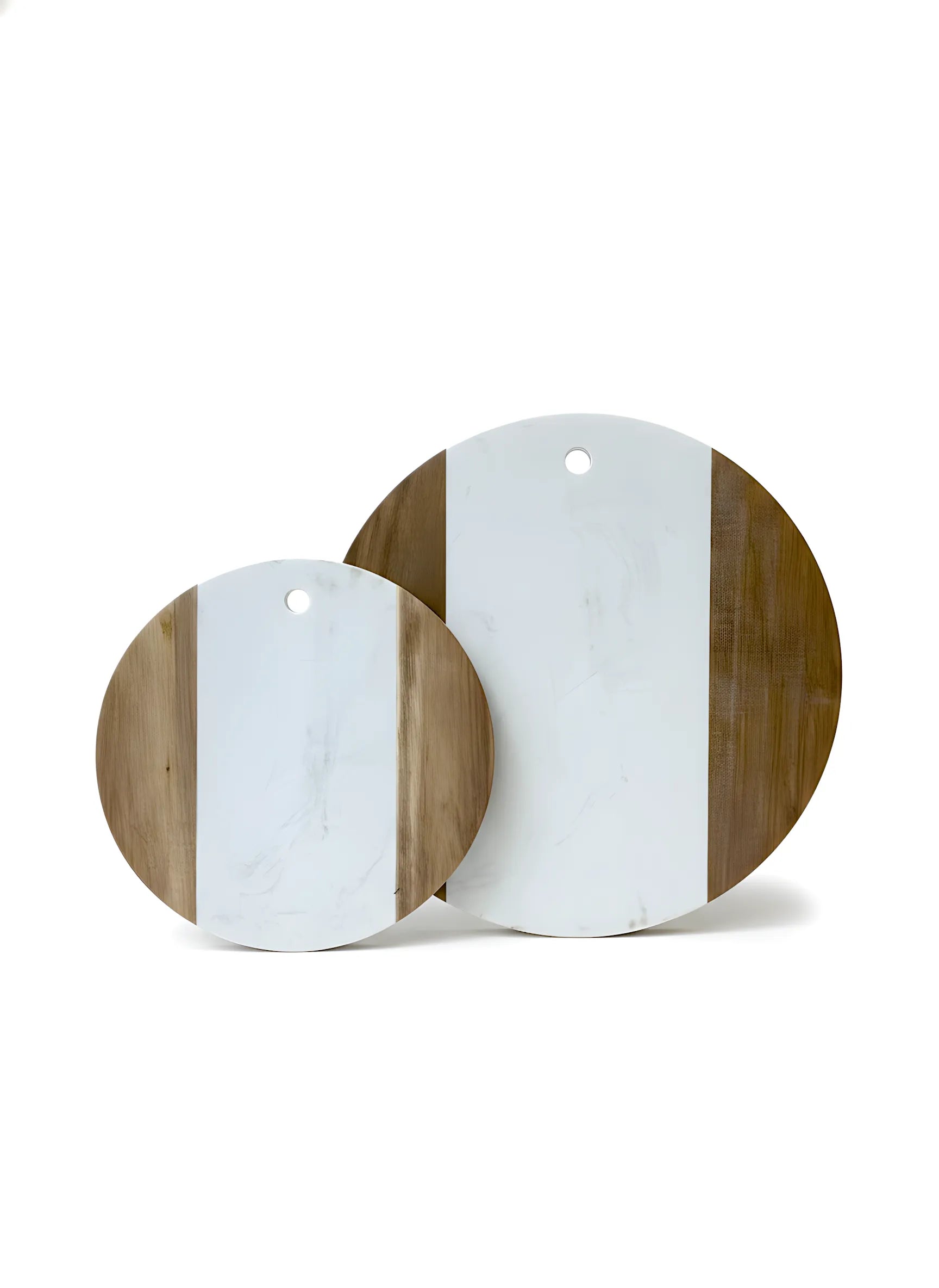 Tocător rotund din lemn de acacia și marmură albă, Ø25 cm – Olivy