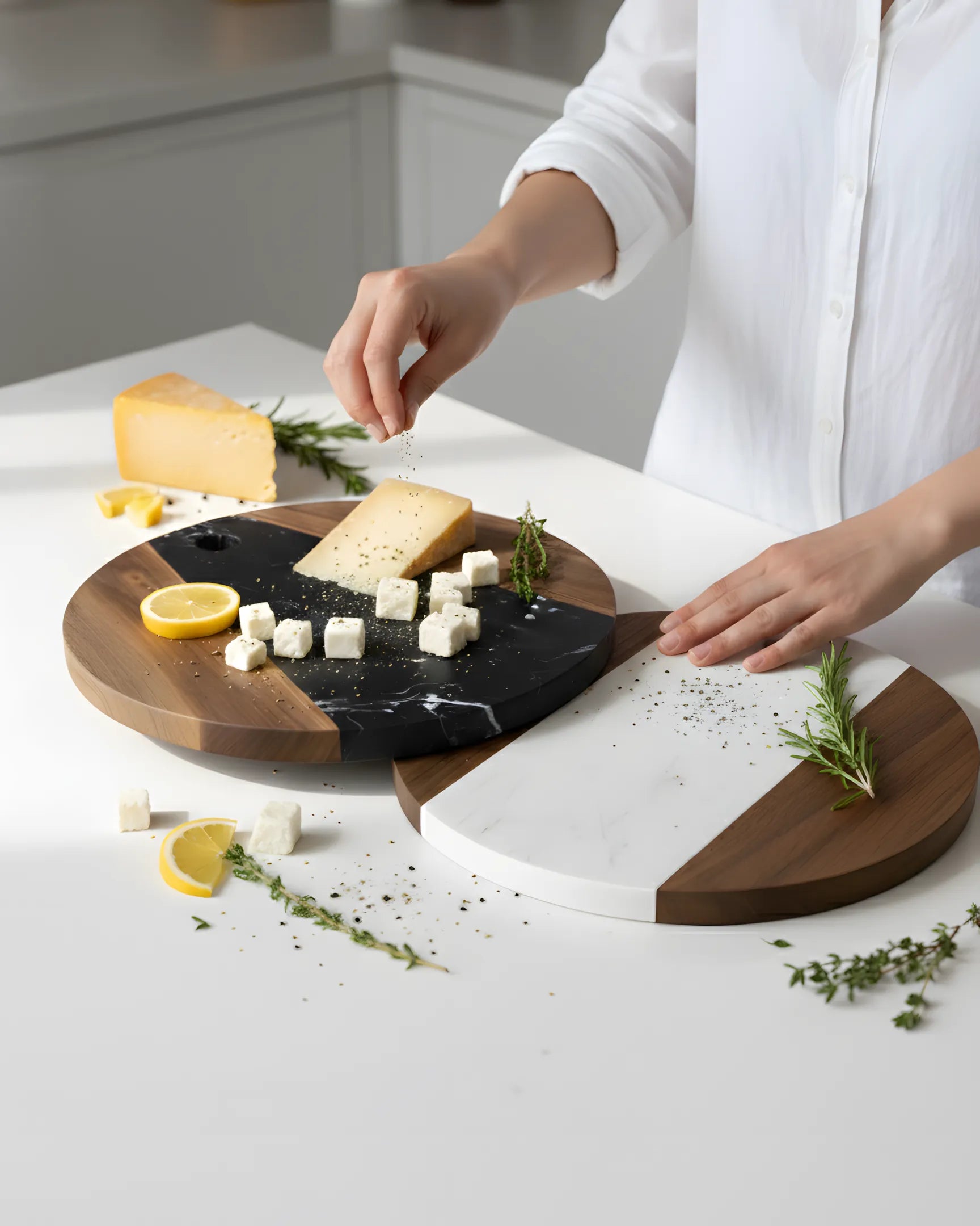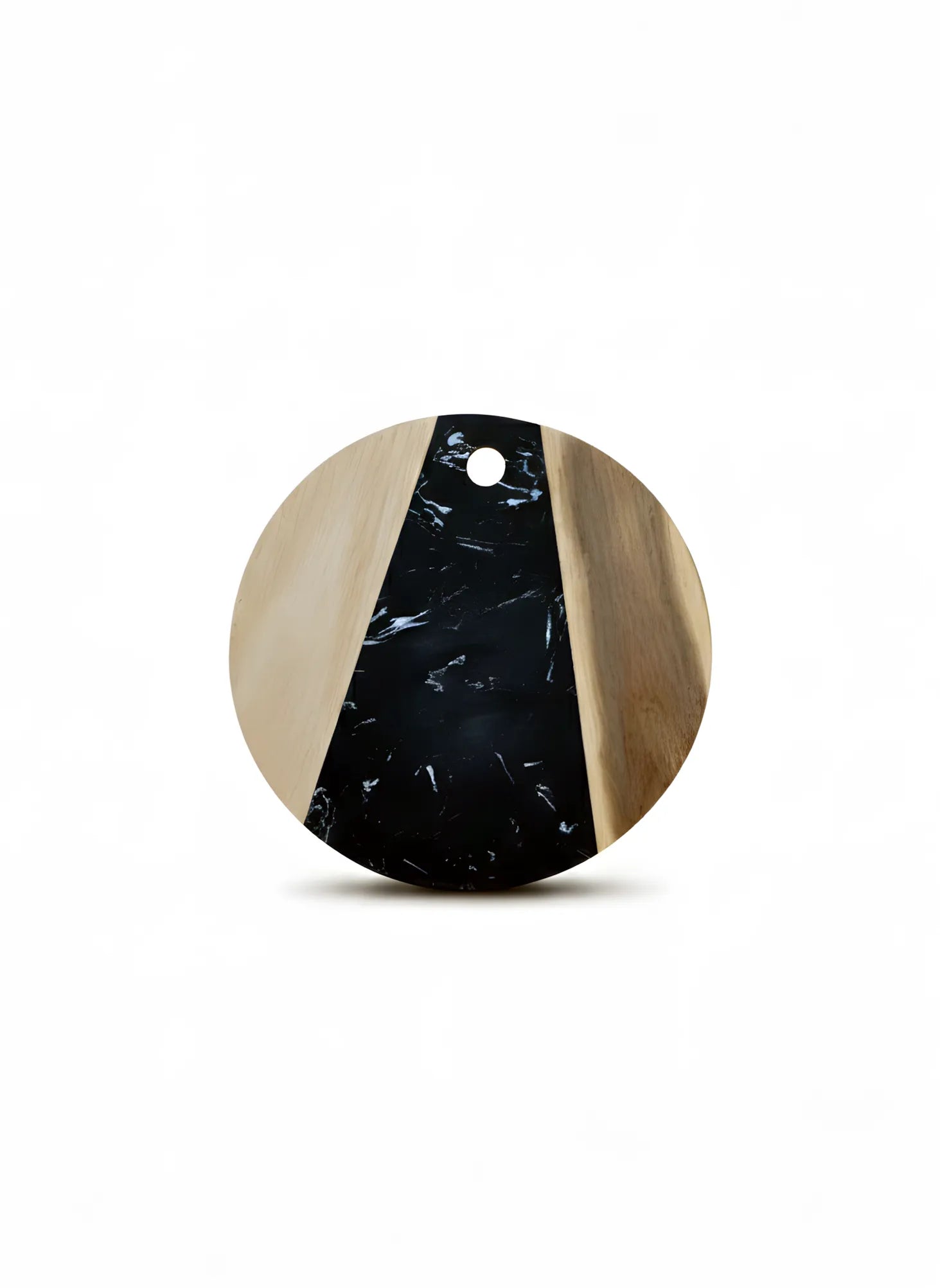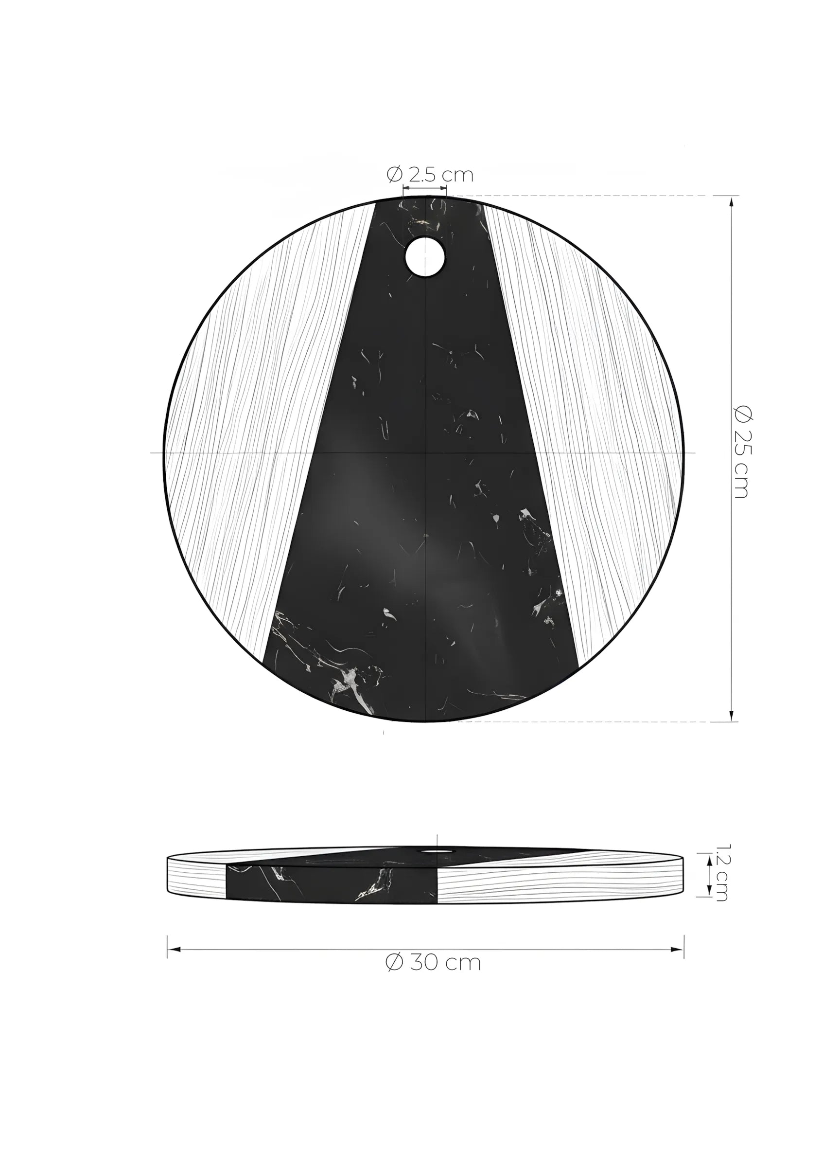 Tocător rotund din lemn de acacia și marmură neagră, Ø25 cm, Olivy