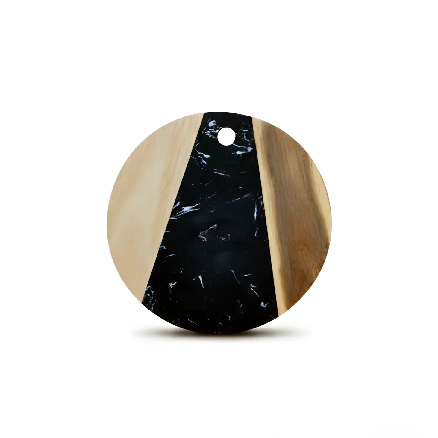 Tocător rotund din lemn de acacia și marmură neagră, Ø25 cm