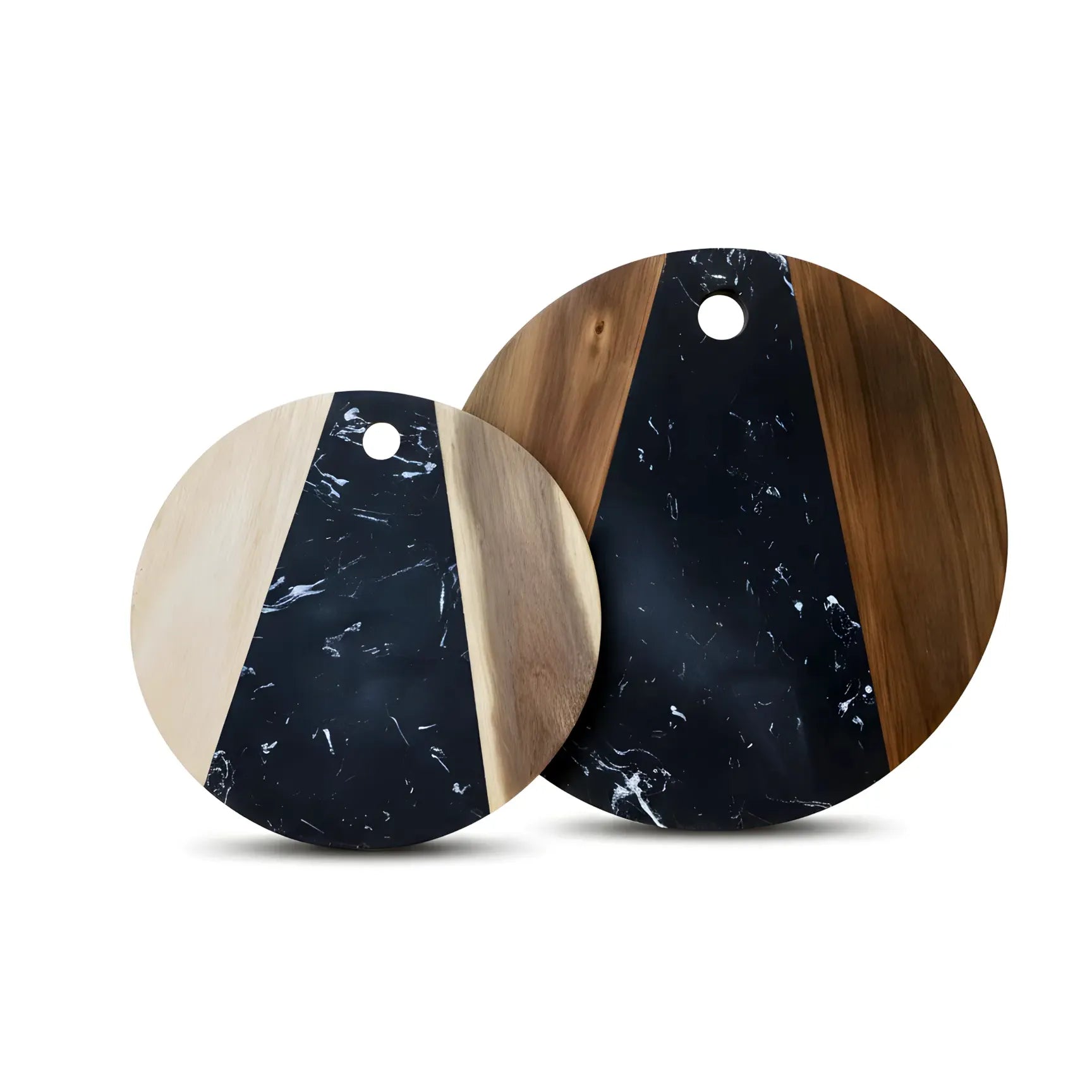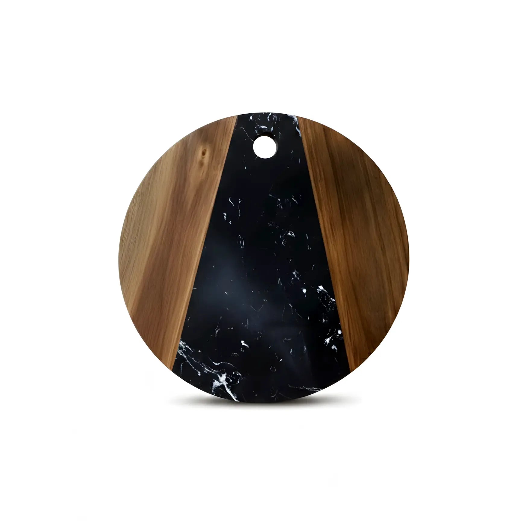 Tocător rotund din lemn de acacia și marmură neagră, Ø30 cm